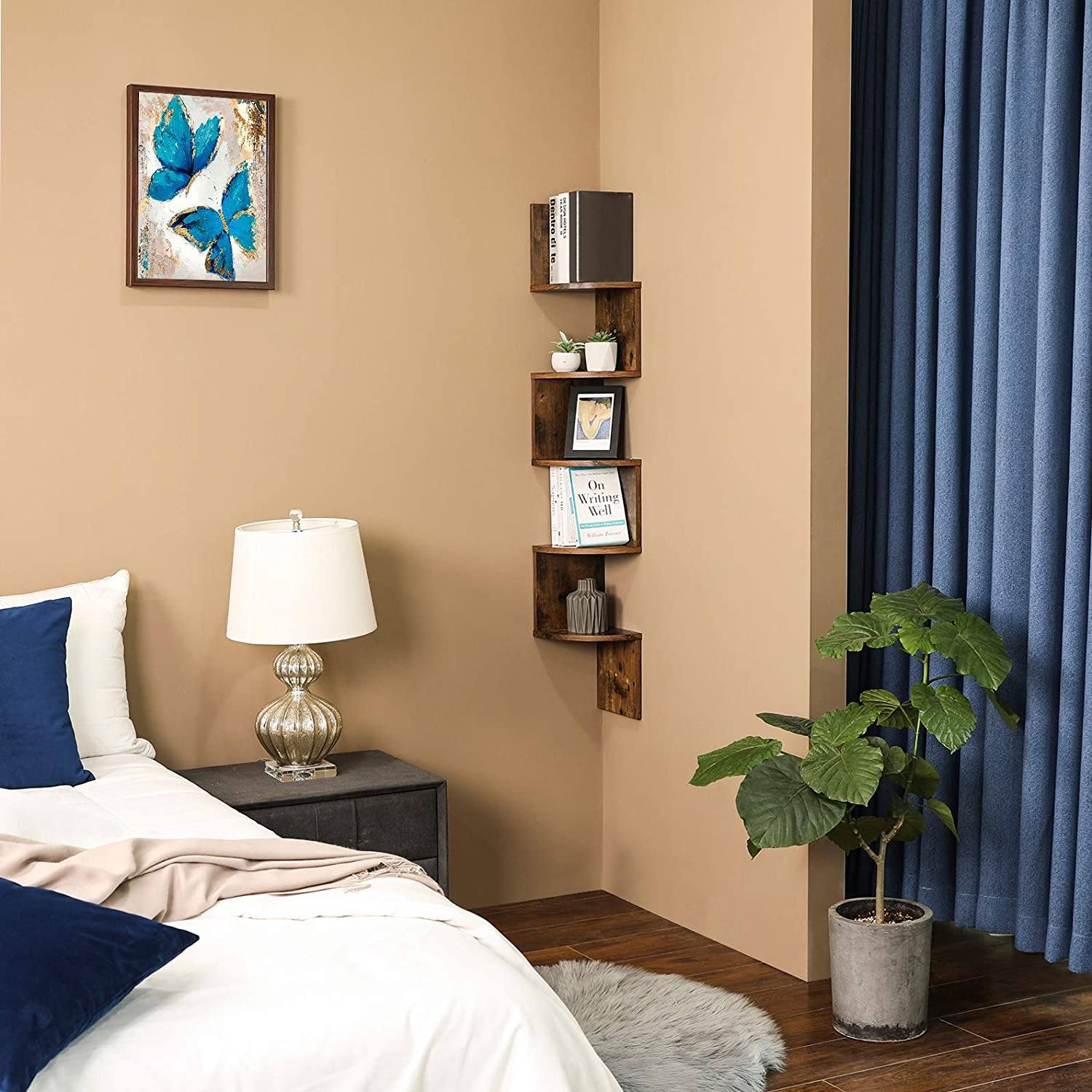 Praktisk hjørnehylde - ideel til små rum, soveværelser, hjemmekontor eller stuen. Kan nemt placeres i ethvert hjørne med en maks. belastning på 15 kg per hylde. 20 cm afstand mellem hylderne, så der er plads til bøger, billeder og andre dekorative genstande.