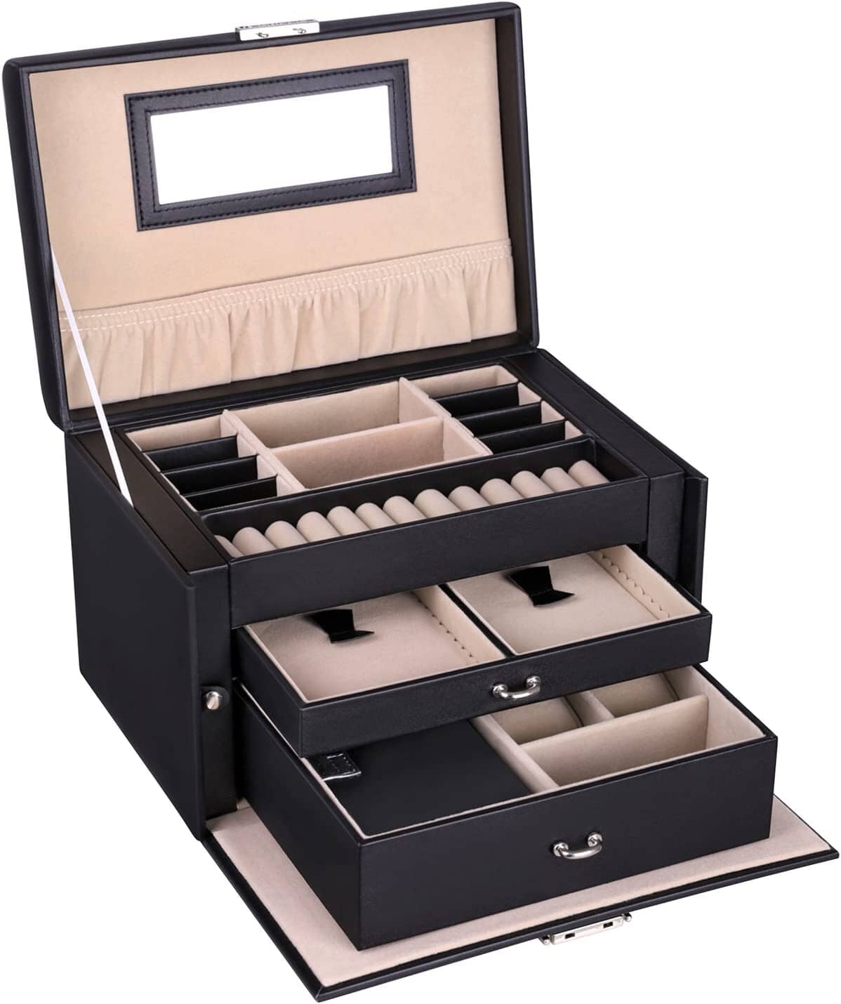 Praktisk på farten - Denne miniboks har også et stort spejl indeni, så du kan lægge makeup, mens du er på farten! Kompakt, men stadig med masser af opbevaringsrum og to lag, er dette smykkeskrin perfekt til enhver weekendtur eller strandtur.