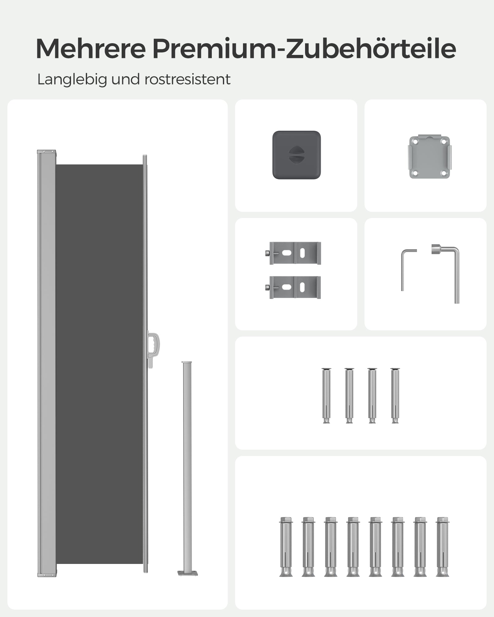 Med den medfølgende fjeder kan læsejlet spændes nemt og lydløst. Den praktiske gulvmontering og tydelige instruktioner gør opsætningen enkel, så du hurtigt får et privat og skyggefuldt område.