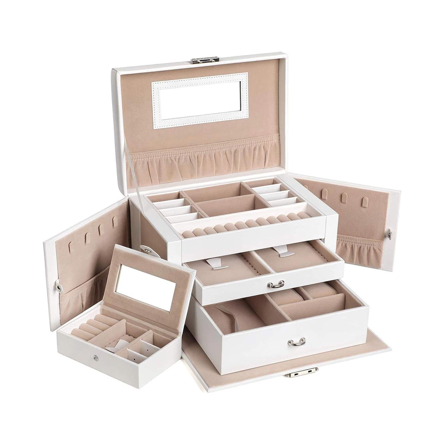 Let at bruge - Sig farvel til at vikle halskæder ud, forlagte øreringe og andre frustrerende øjeblikke, der bruges på at grave i forskellige skuffer for at finde det, du leder efter. Bliv organiseret med dette praktiske smykkeskrin!