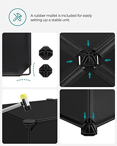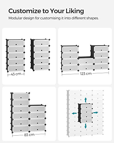 Med kvalitets ABS-forbindere, et solidt metalramme og vandafvisende, let rengørbare PP-plastikplader kan hver 40 x 30 x 17 cm (L x B x H) rum rumme op til 10 kg; anti-væltede enheder er inkluderet for at give din samling en sikker hylde.