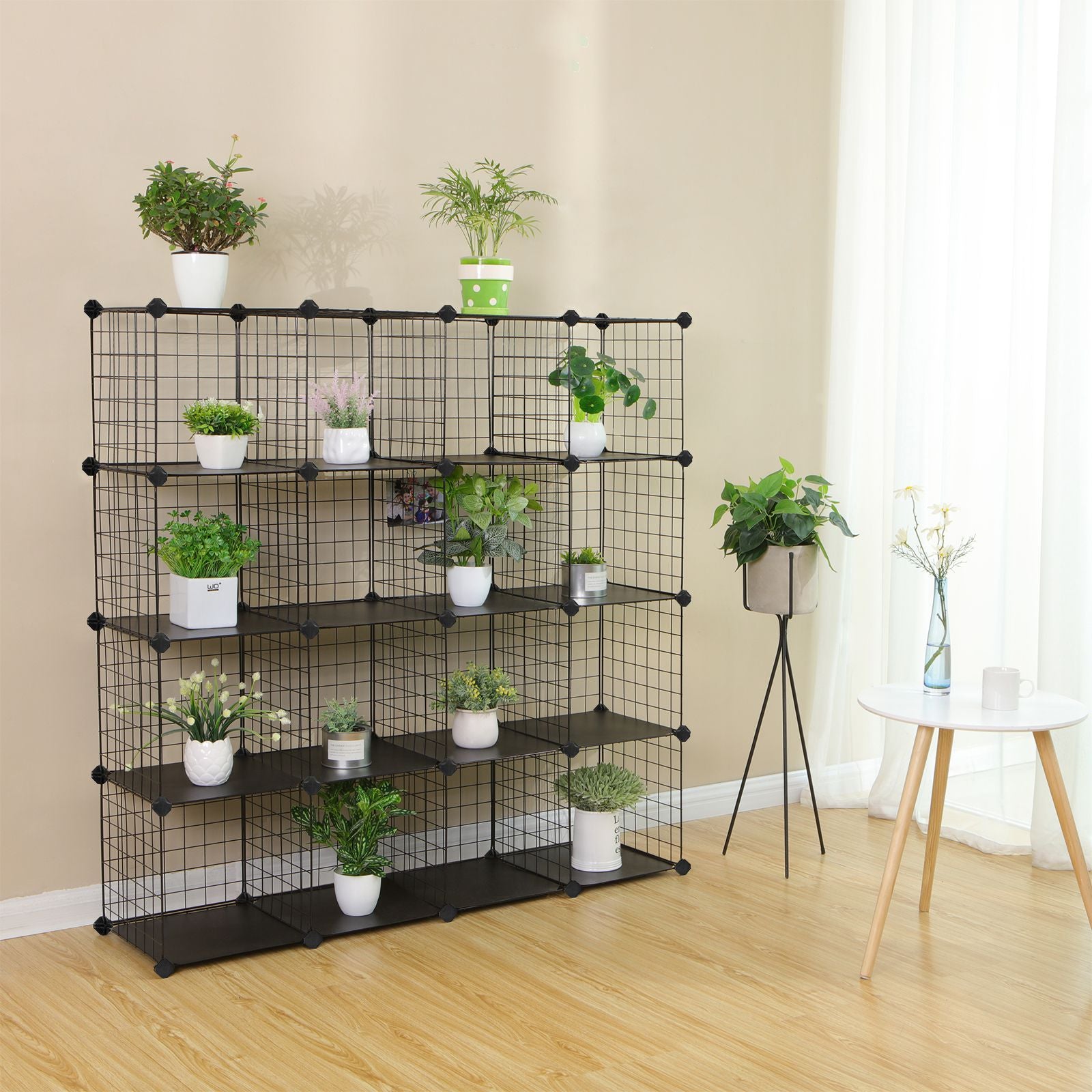 Med denne moderne, industrielle opbevaringsløsning kan du skabe den perfekte opbevaringsenhed til dit hjem. Disse opbevaringskasser kan tilpasses efter behov, så du kan kombinere de 16 kuber, som du vil, for at udnytte pladsen bedst muligt. Uanset om det er i stuen, soveværelset, gangen eller kontoret, vil dette modulære design bringe orden og stil til ethvert rum.