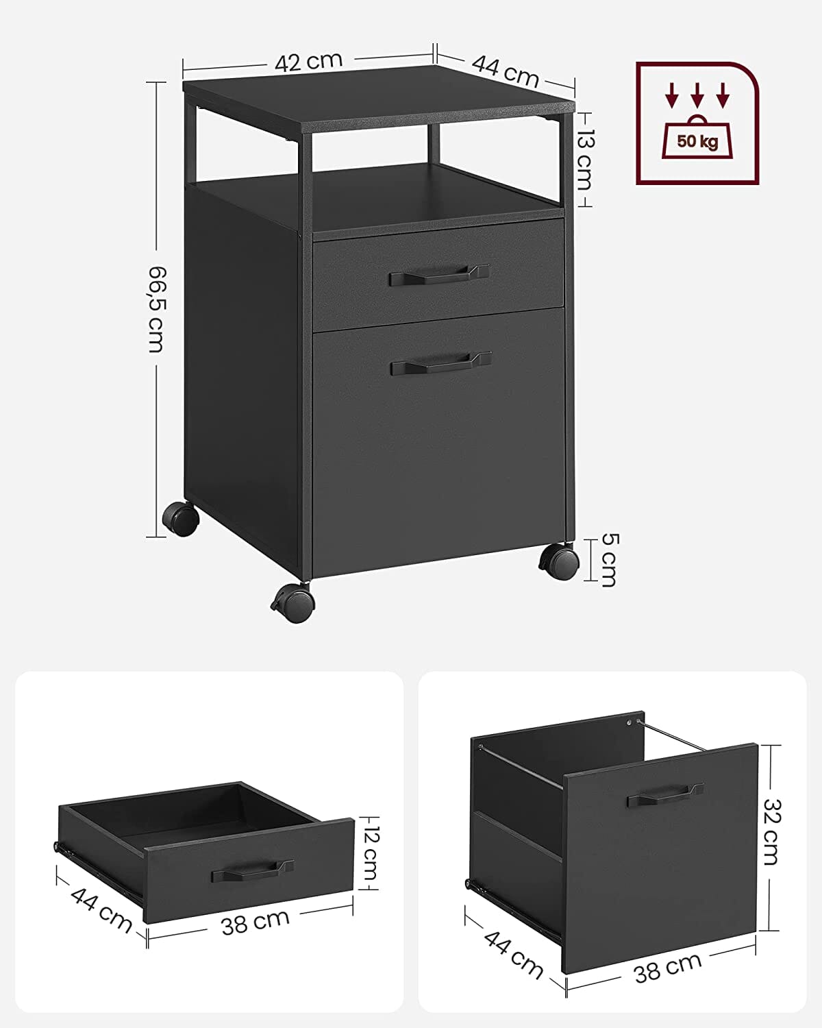 Vægt: Vægt: Med en vægt på 17,6 kg kan du nemt flytte dette arkivskab rundt, når det er nødvendigt.