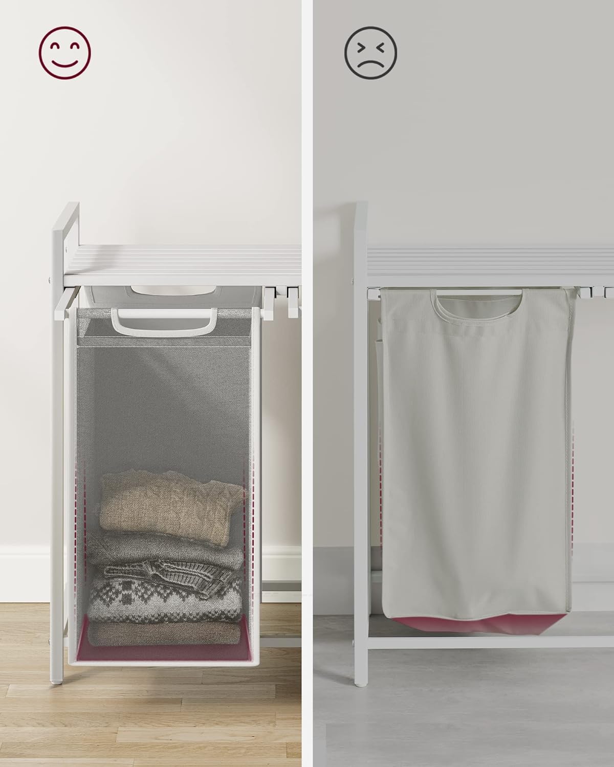 God vasketøjskurv, som er pæn og holder til en del. Der er ca til en omgang vask i en pose/kurv (7kg vaskemaskine). God holdbar, og står heller ikke og vipper, eller er løs i skruerne. Godt produkt overordnet.
