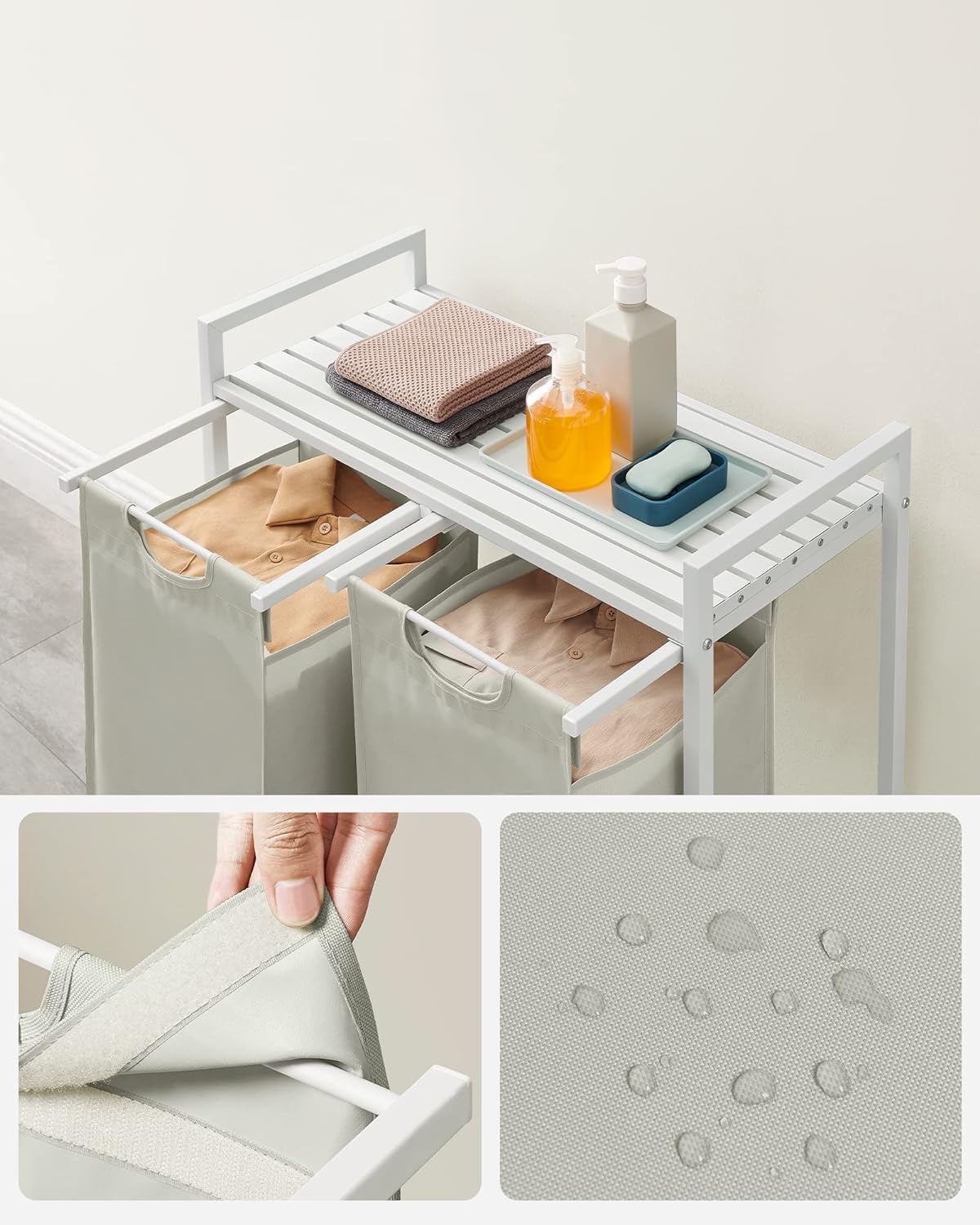 Skab et praktisk og stilfuldt vaskerum med denne flotte vaskekurv. Kurvene er designet med en stof, der gør dem holdbare og lette at rengøre. De er også aftagelige og kan rumme op 46 liter. Den store topplade er perfekt til at holde dine vaskemidler eller dekorative elementer, da den kan holde op til 20 kg.