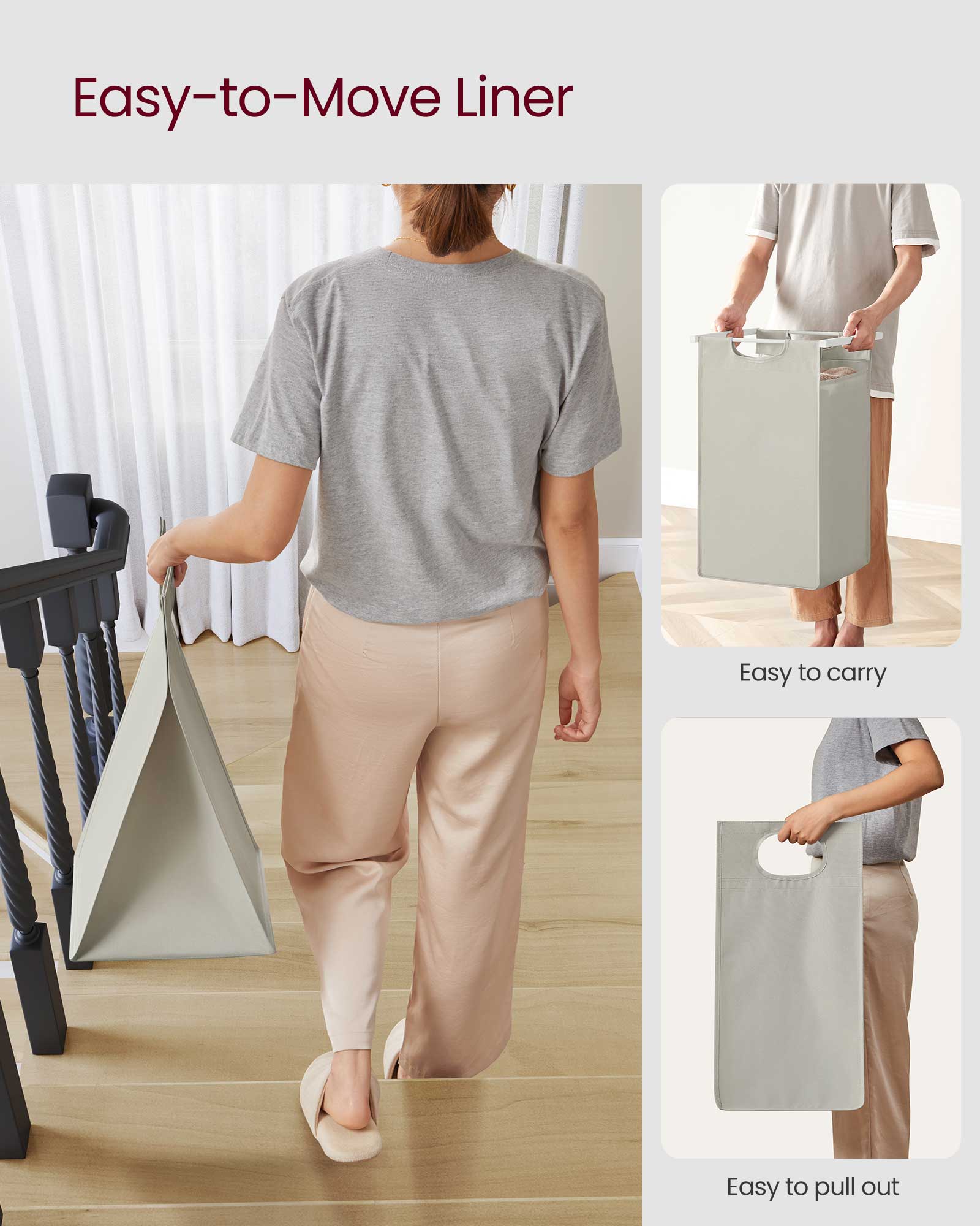 Denne praktiske vaskekurv er også let at rengøre og opbevare. Kurvene er aftagelige, så du kan nemt fjerne og rengøre dem efter behov. Stoffet er også holdbart og let at tørre af, så du kan holde din vaskekurv ser godt ud som ny. Når du ikke bruger kurvene, kan du let fjerne dem og opbevare dem i skabet eller på hylden.