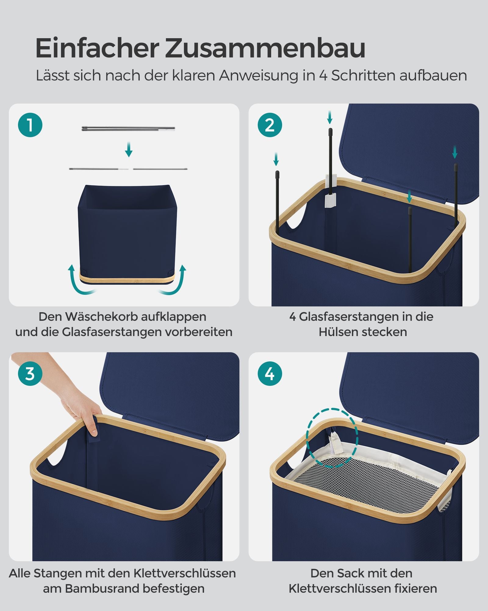 Med klare instruktioner og uden behov for værktøj kan du hurtigt sætte denne vasketøjskurv op på blot 5 minutter. Det betyder, at du kan komme i gang med at organisere dit vasketøj uden besvær.
