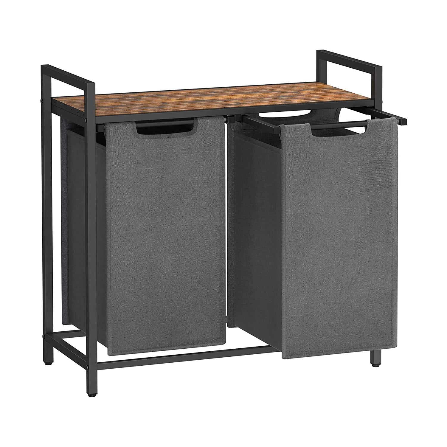 Denne elegante vasketøjskurv er fremstillet i en kombination af brune og grå farver og samler moderne stil og funktionalitet i én smuk pakke. Den leveres med to rum til at adskille rent og snavset tøj eller holde legetøj pænt - alt efter hvad du vælger! Den måler 73 x 33 x 72 cm og er rummelig nok til at opbevare mange ting uden at fylde for meget.