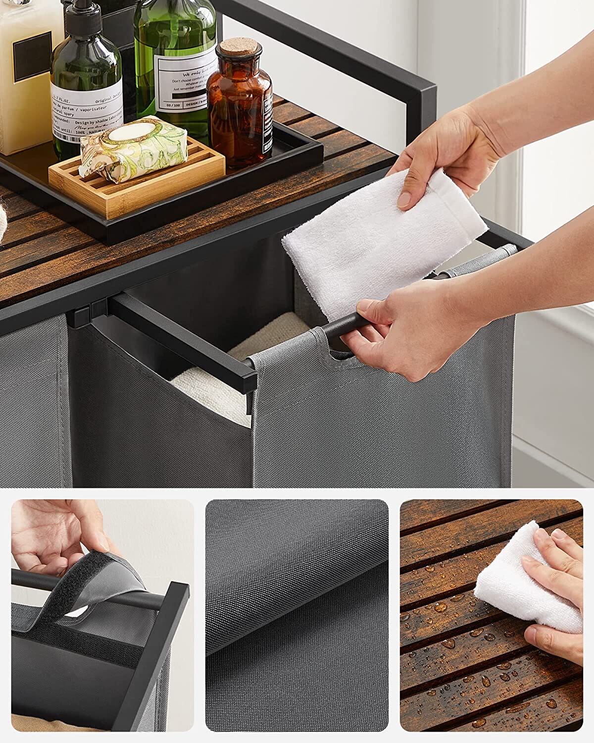 - Materiale: MDF, Stål, Oxford stof