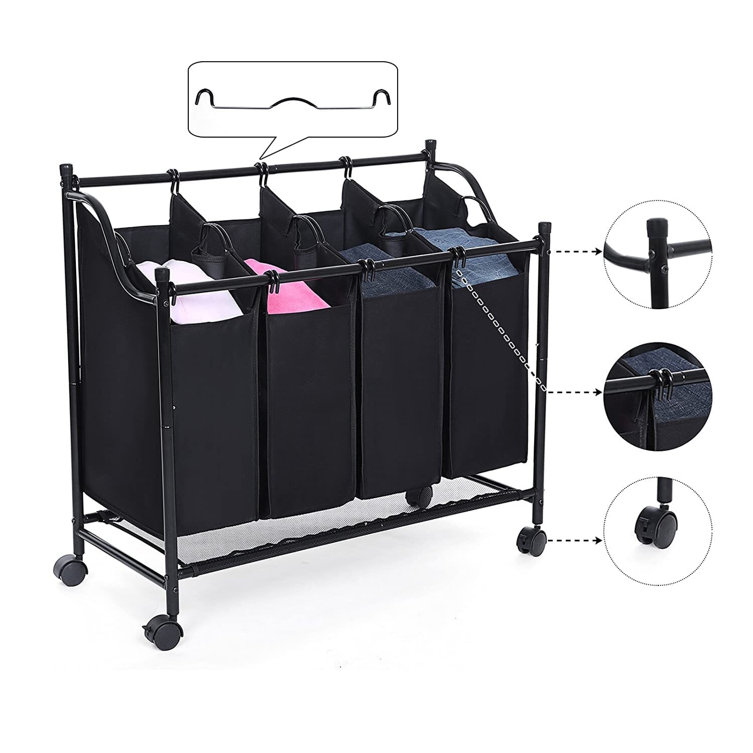 140L, enorm kapacitet - Denne vasketøjskurv med 4 poser giver masser af plads til at opbevare al familiens vasketøj på ét sted. Ikke flere spredte bunker af tøj rundt om i huset.