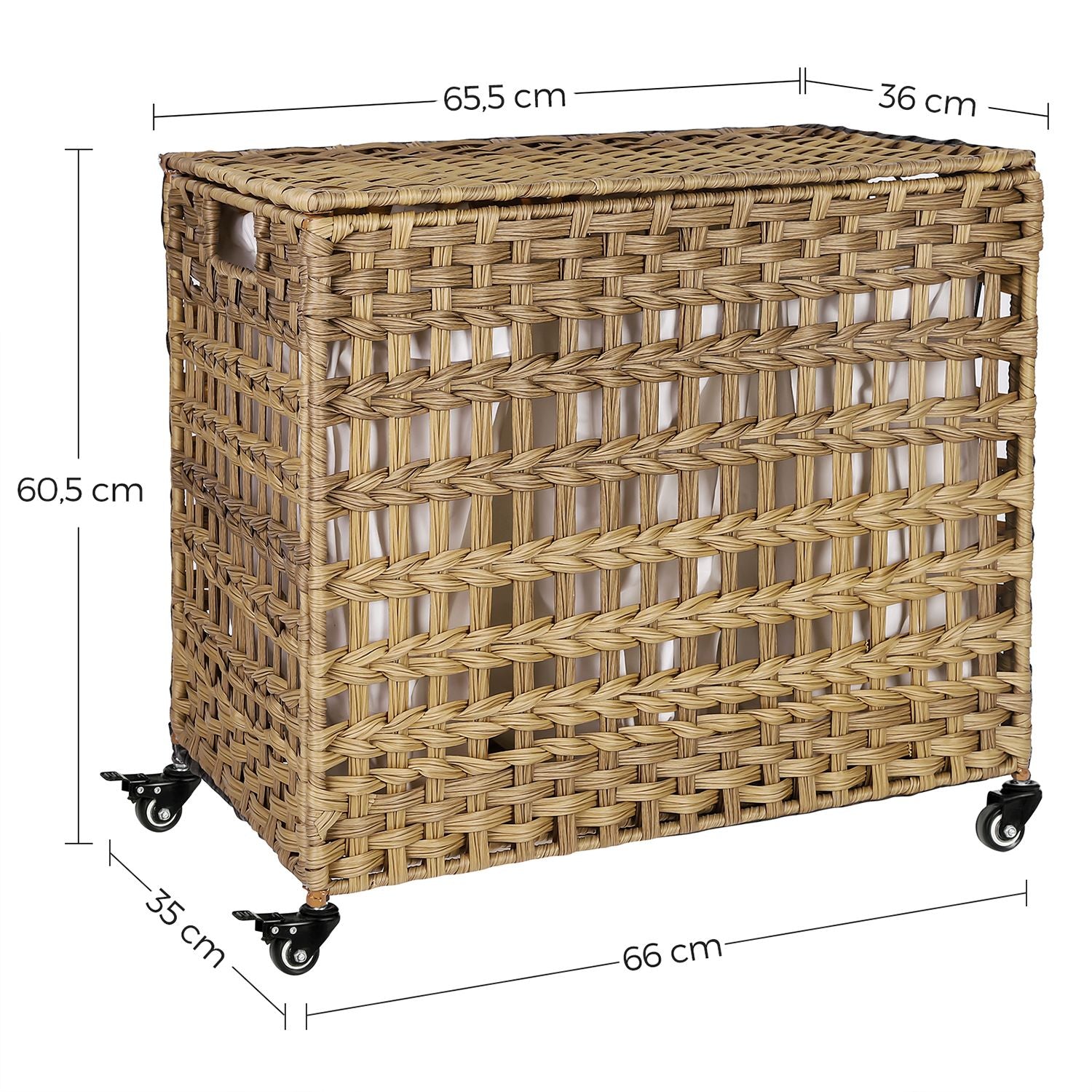 Med 4 hjul og en stilfuld syntetisk læderrem kan selv dit barn hjælpe med at rulle eller trække en uges vasketøj til vaskemaskinen. To bremser sikrer, at kurven kan låses på plads, så du kan være sikker på, at den ikke ruller væk, mens du fylder den.