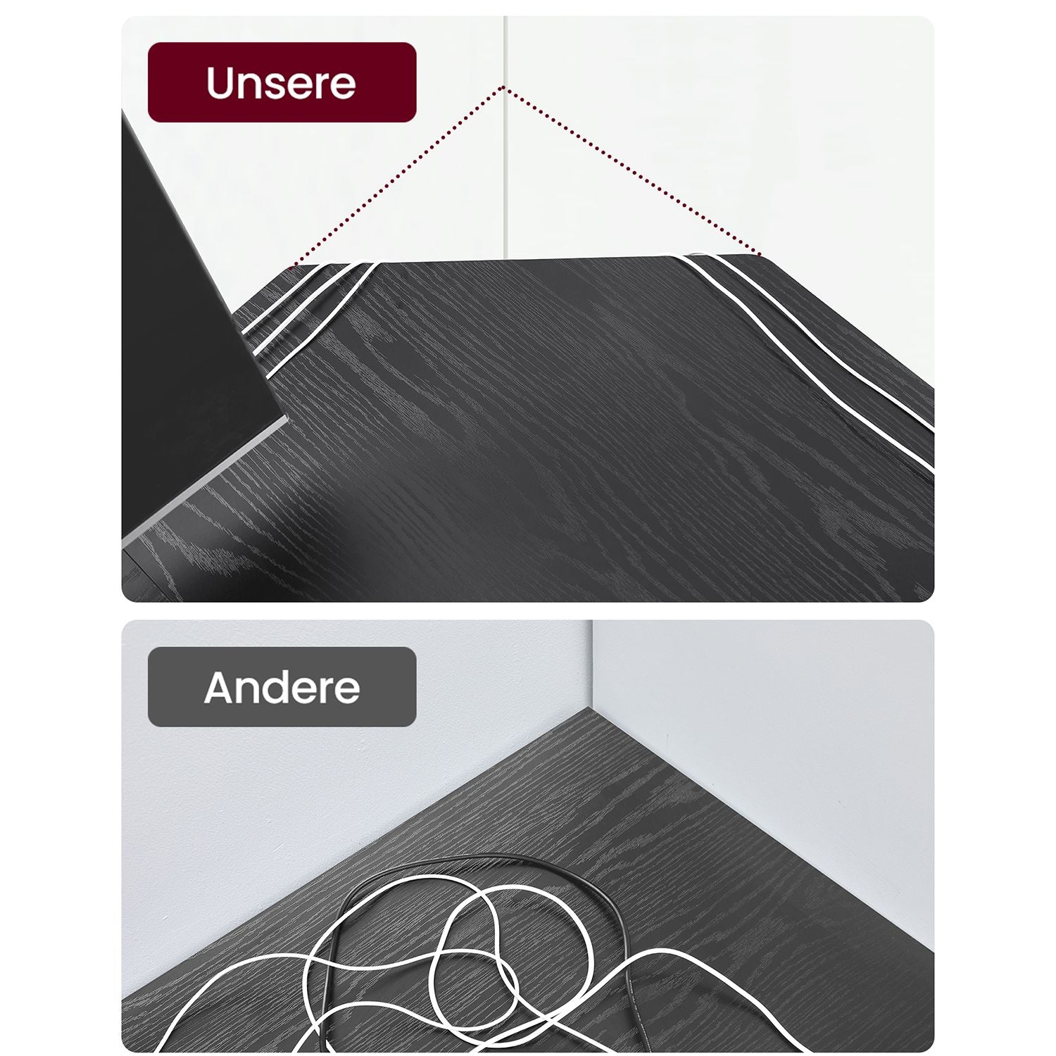 Designet med en afskåret hjørne på bagsiden, er dette L-formede skrivebord ideelt til at holde dine kabler og ledninger organiserede og ude af syne. Denne funktion hjælper dig med at holde dit arbejdsområde ryddeligt og skaber et visuelt tiltalende miljø. Sig farvel til rodet med kabler, der kan forstyrre din arbejdsflow.
