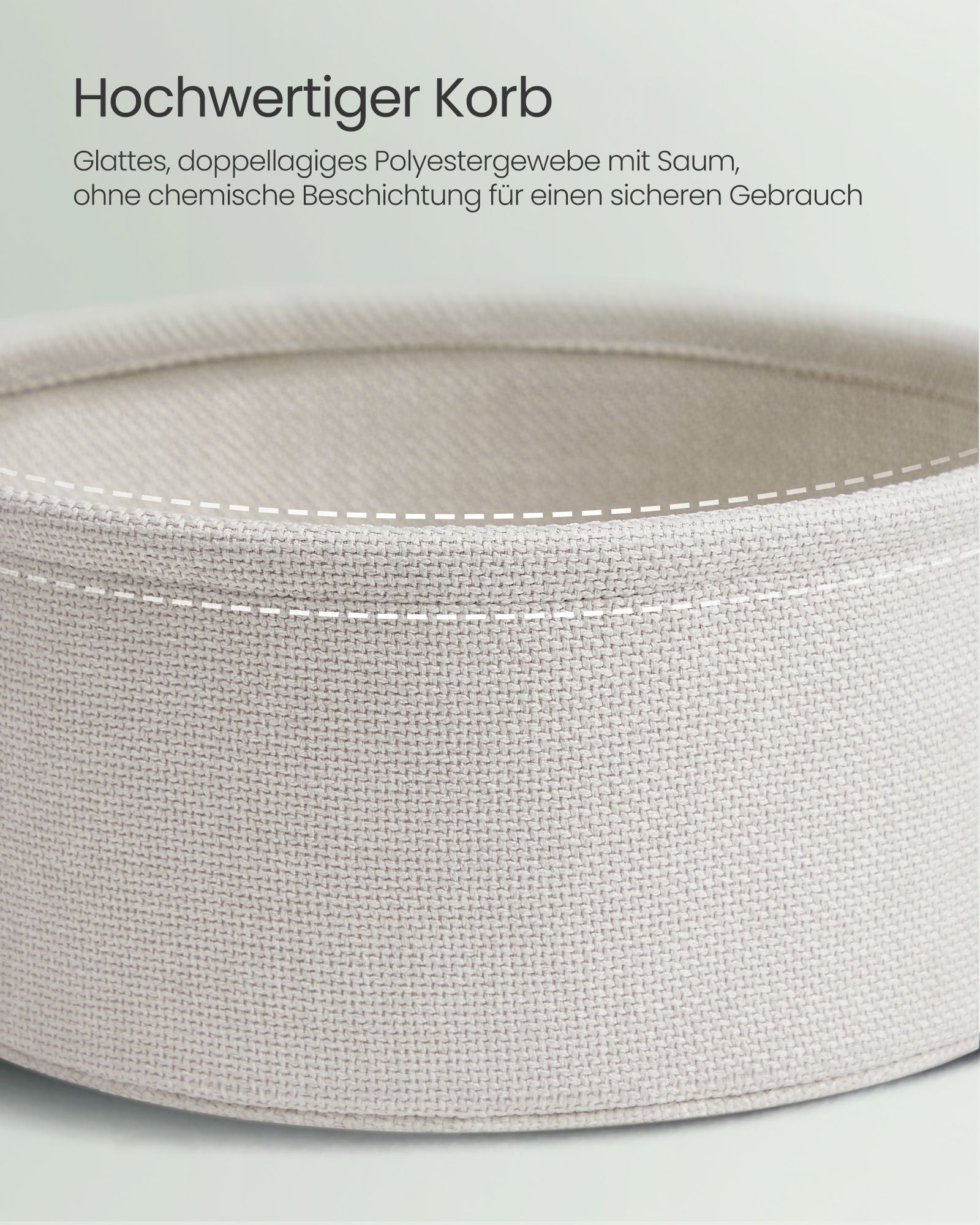 Dette sidebord er både stabilt og stilfuldt. Den solide spånplade-bordplade er fastgjort til rammen uden at vakle, og de U-formede stålben giver robust støtte. Justerbare fødder sikrer ekstra stabilitet og beskytter dine gulve mod ridser. Den dobbeltlags polyesterkurv er både æstetisk tiltalende og praktisk, med sit linnedlignende udseende, der tilføjer et unikt præg til dit hjem.