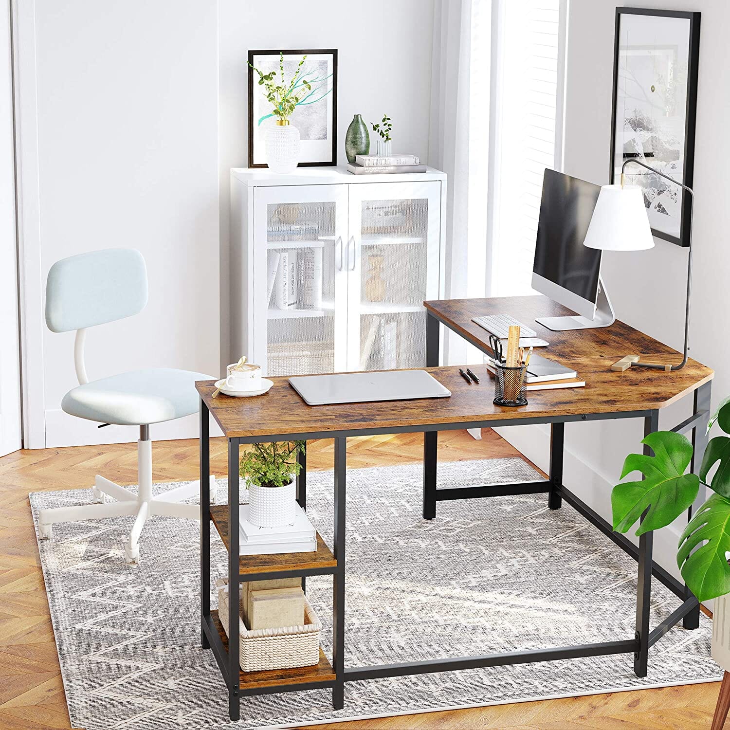 Solidt og praktisk - Matteo hjørnebord er et stærkt og stilfuldt skrivebord, der passer til ethvert hjemmekontor. Med sin sorte metalramme og rustikke træspånplade vil det helt sikkert tilføje stil og bekvemmelighed til dit arbejdsområde.