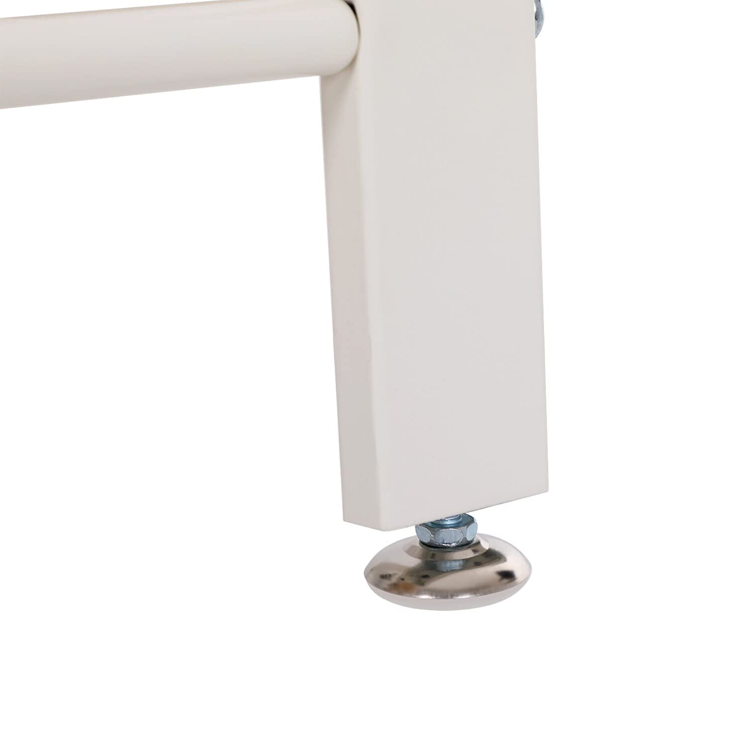 Udformet med en hvid metalramme og spånplade med laminat (HPL) overflade i lysebrun træfarve er dette garderobestativ attraktiv tilføjelse til ethvert rum. Højden på benene kan justeres efter behov for at sikre, at stativet står stabilt på ethvert gulv.