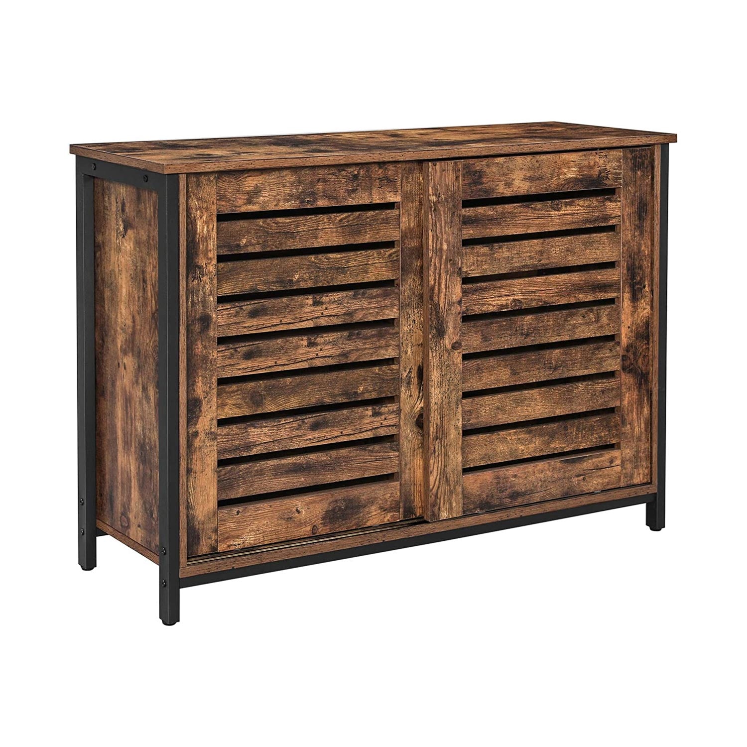 FLAVOURED VIBE: Denne moderne skænk tilføjer øjeblikkeligt et frisk og kreativt touch til ethvert rum med denne moderne skænk. Med en sort stålramme og rustikke, brune lamellåger vil du tilføje krydderi til dit køkken, peber til din spisestue og smag til din bolig!