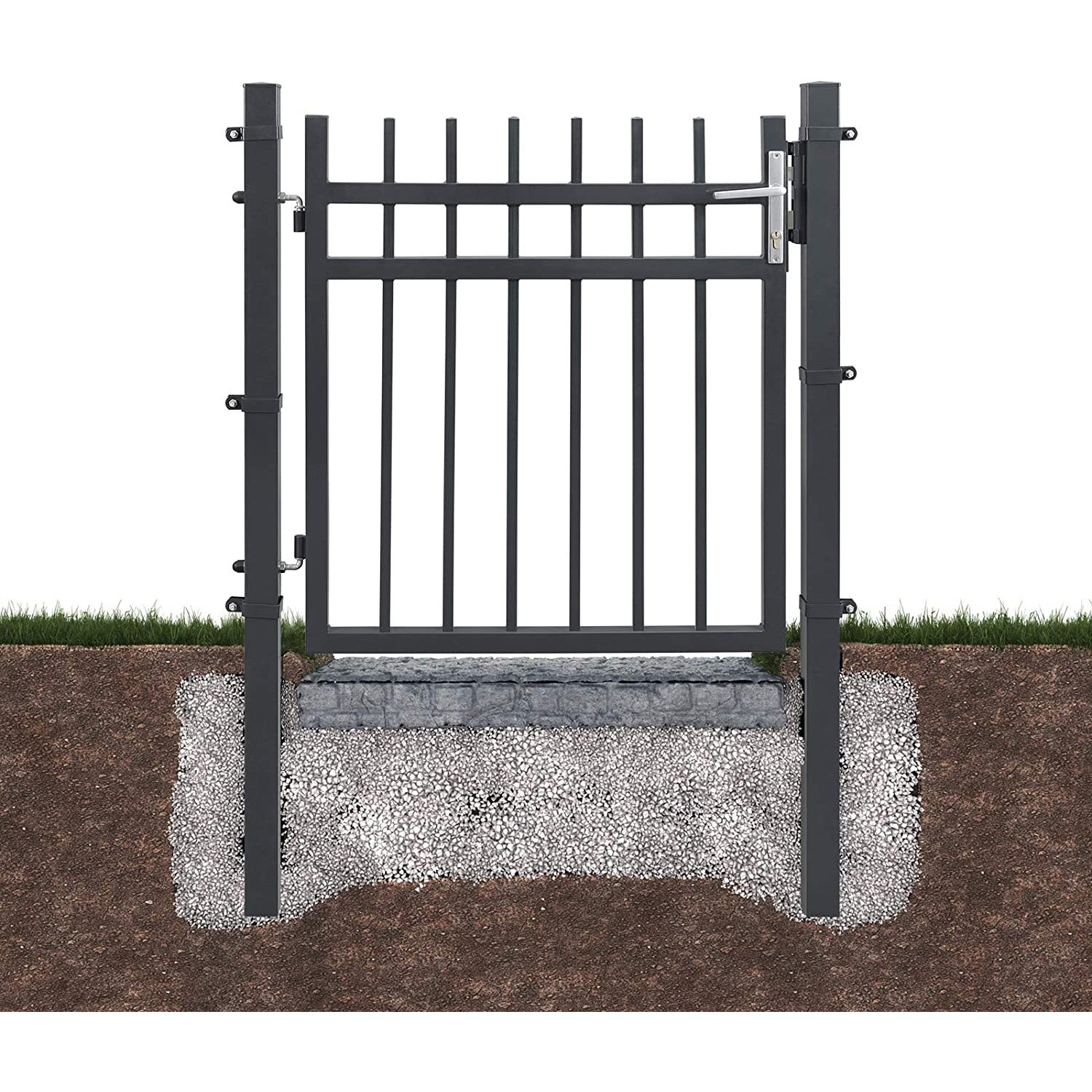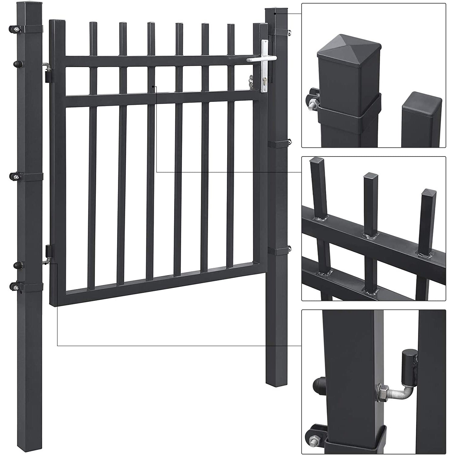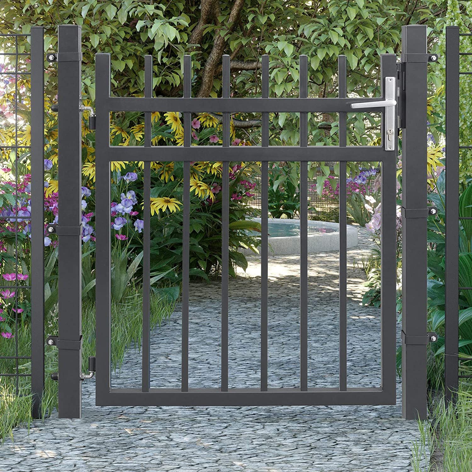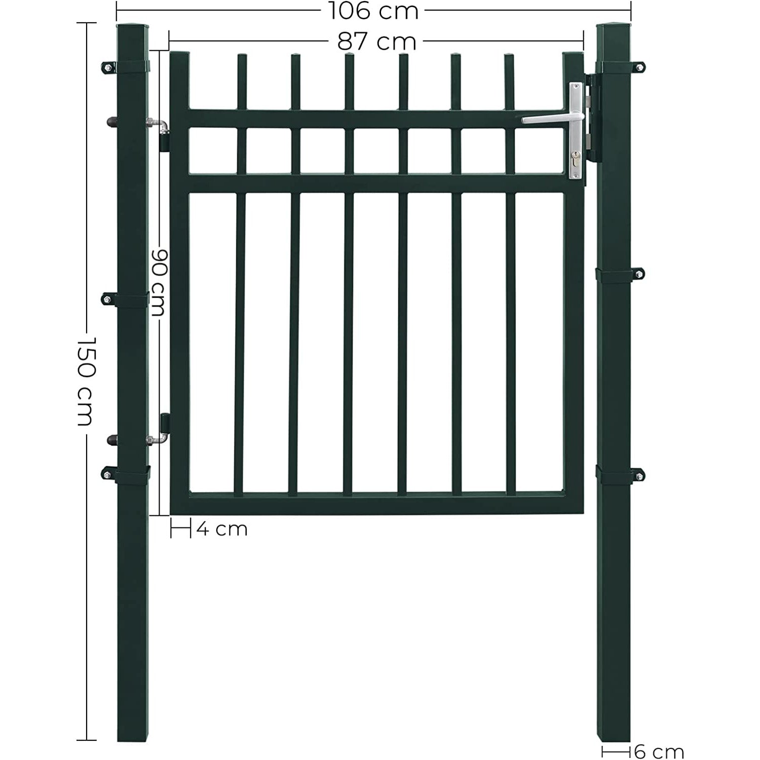 Fremstillet af galvaniseret jern med en pulverlakering, står denne haveport stærkt mod både vind og vejr. Svejsede stænger, solide stolper og holdbare hængsler sikrer lang levetid og modstandsdygtighed mod rust og korrosion – perfekt til det danske klima.