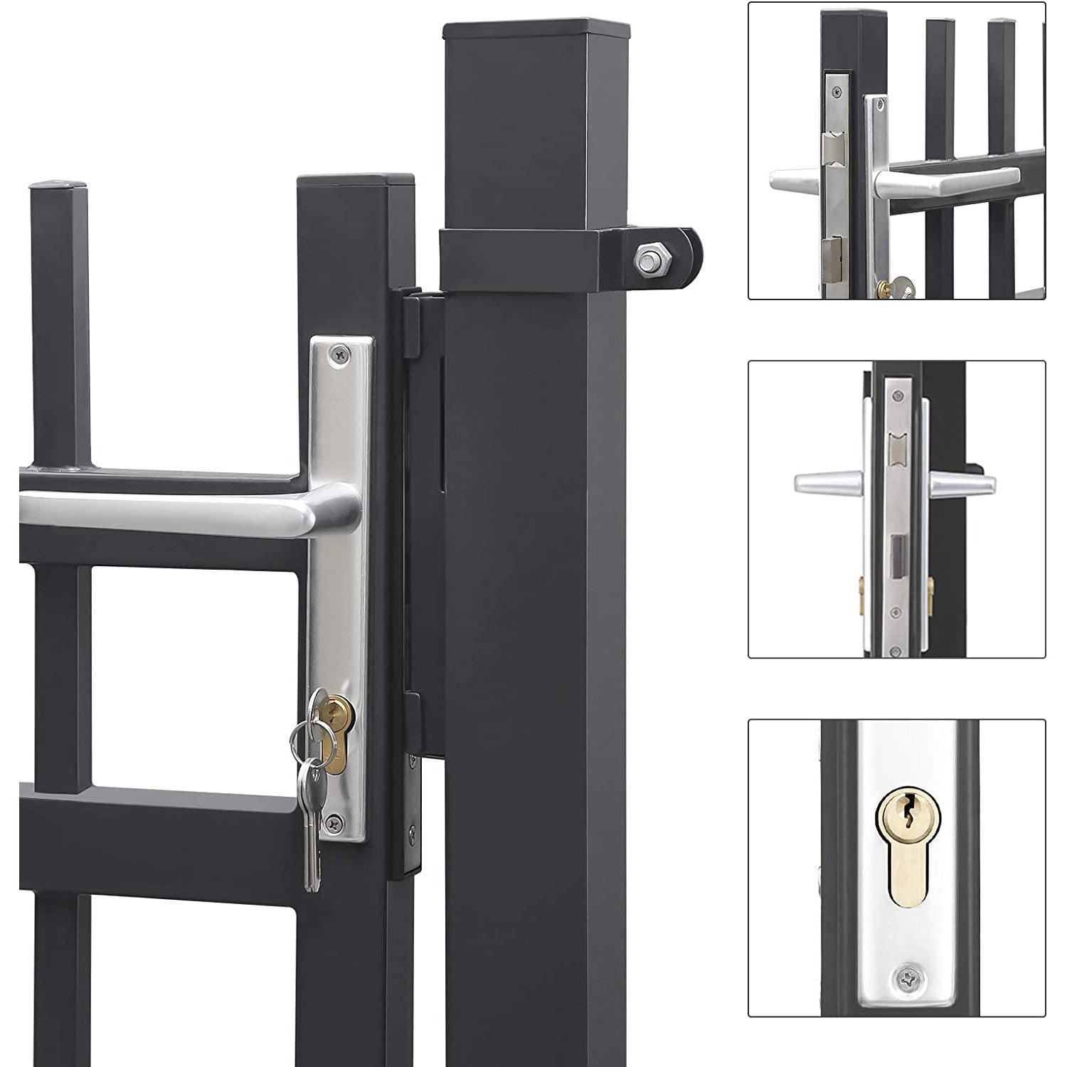 Beskyt dine roser og hele haven mod ubudne gæster. Porten har rustfrie aluminiumshåndtag og en kobberlåsemekanisme, som kun kan åbnes med de medfølgende 3 nøgler, så din have forbliver et privat paradis.