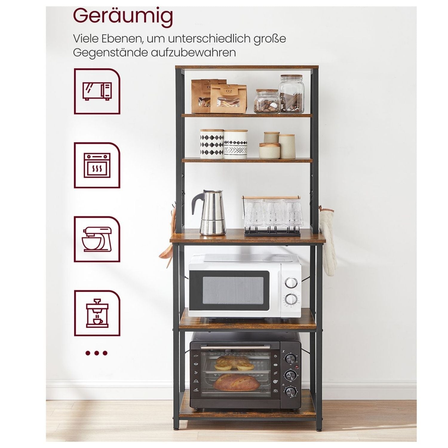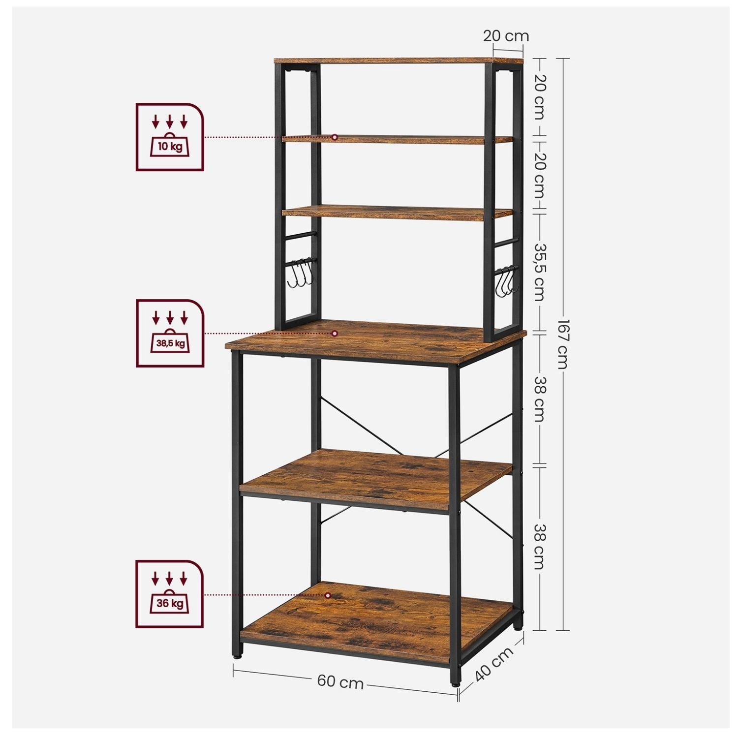 Med dimensionerne 40 x 60 x 167 cm er denne 6-lags mikrobølgeovnsreol perfekt til små køkkener eller som en mini kaffebar. Denne opbevaringshylde giver dig muligheden for at udnytte pladsen i dit køkken til fulde, selv i de mindste rum.