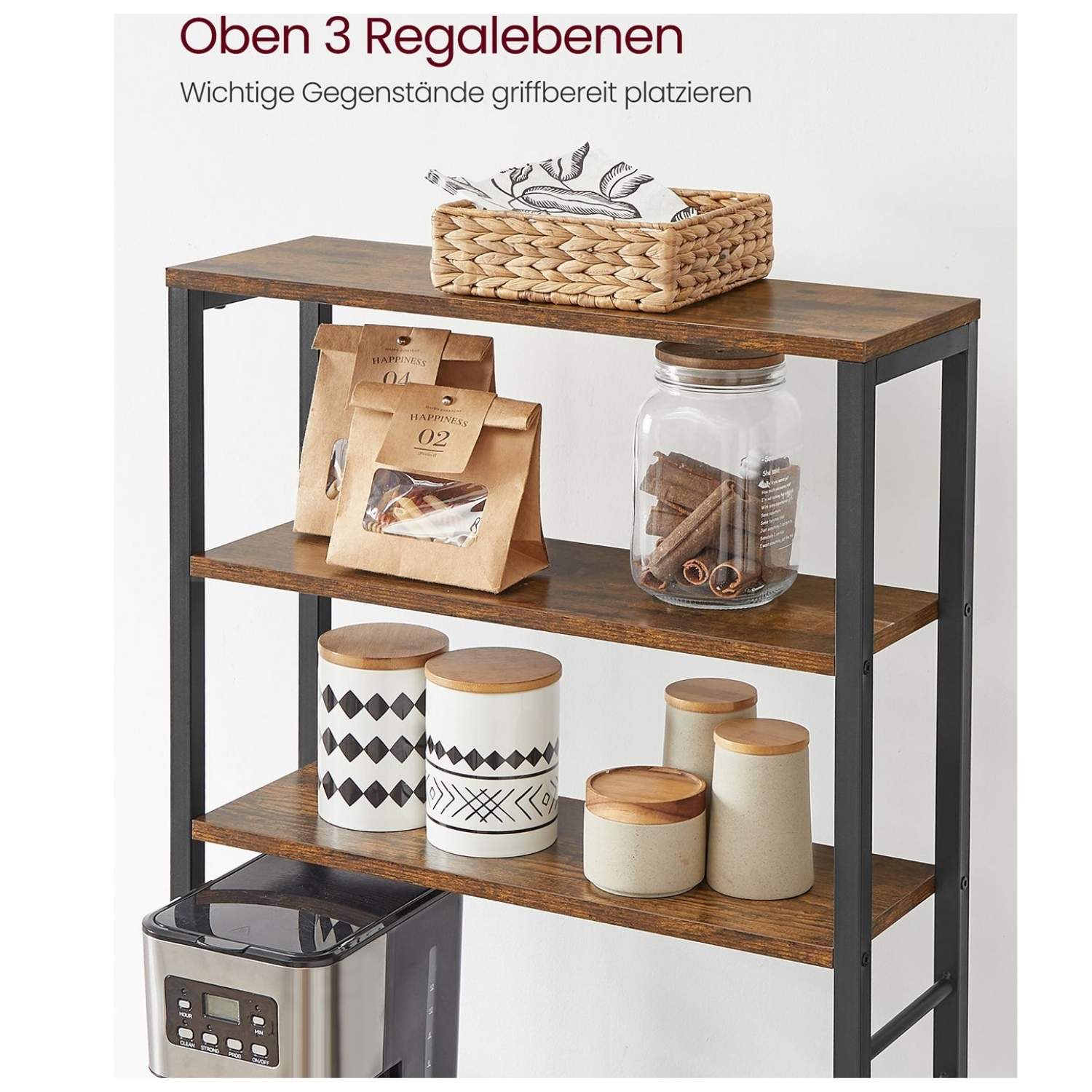 Med justerbare fødder sikrer denne køkkenreol stabilitet på dit gulv uden at efterlade ridser. Inkluderet væltningssikring til at fastgøre reolen til væggen sikrer et sikkert miljø for dig og din familie. Dette design tager ikke kun hensyn til rummelighed og stil, men også til sikkerhed og stabilitet i hjemmet.