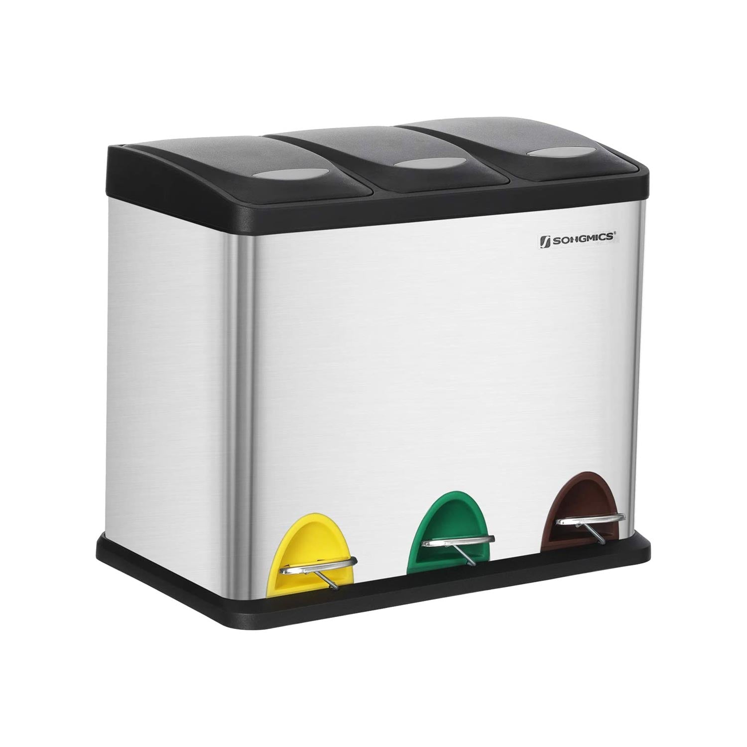 Praktisk skraldespand - En ideel skraldespand, der gør sortering af dit affald til en leg! Med sin kapacitet på 24 l og tre underafdelinger på 8 l er den perfekt til opbevaring af forskellige typer affald. Den støjsvage pedalmekanisme åbnes nemt med foden, mens de indre beholdere har forkromede håndtag for nem tømning.
