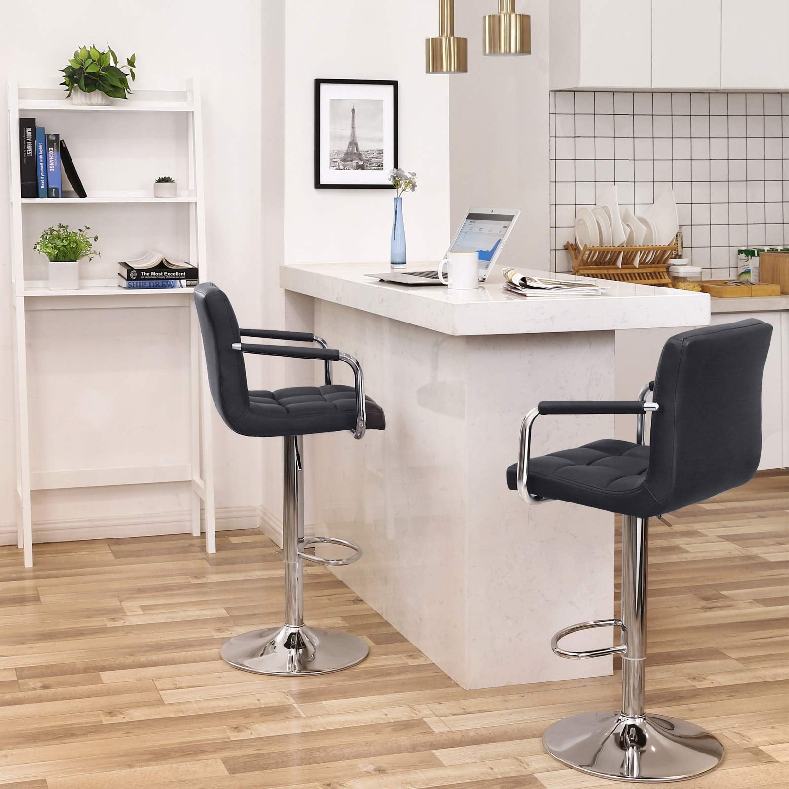 Disse barstole er ikke kun smukke at se på, men også utroligt komfortable at sidde på. Med en 6 cm tyk polstring i højelastisk skum og en bred base med en diameter på 41 cm, får du den ultimative siddeoplevelse. Det behagelige PU-betræk er blødt at røre ved og tilføjer en ekstra luksuriøs følelse. Disse barstole er designet til at give dig daglig komfort, uanset om du nyder en hurtig morgenmad eller en lang samtale over et glas vin.