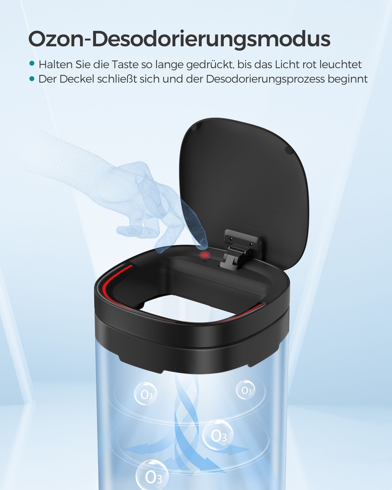 Gør affaldshåndtering lettere med vores motion sensor skraldespand. En simpel håndbevægelse over sensoren, som registrerer bevægelse indenfor 25 cm, åbner låget automatisk inden for 0,3 sekunder. Låget lukker igen efter 5 sekunder, hvilket gør det nemt at undgå kontakt med skraldespanden, samtidig med at du holder hænderne fri til andre opgaver.