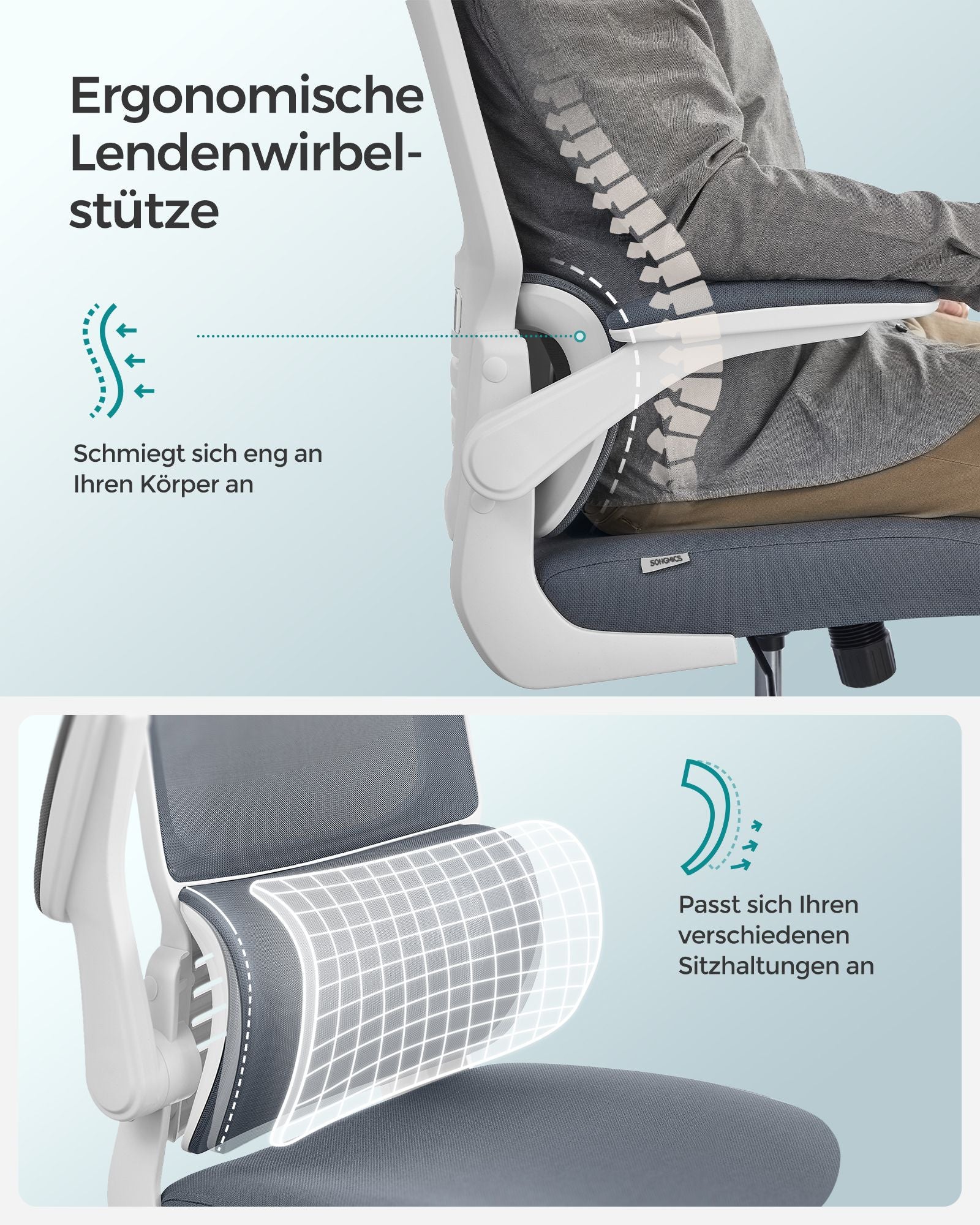 Stolen har en kurvet, adaptiv lændestøtte, der tilpasser sig dine siddevaner og giver optimal støtte til ryggen. Dette sikrer, at du sidder komfortabelt, uanset hvor lang tid du tilbringer i stolen.