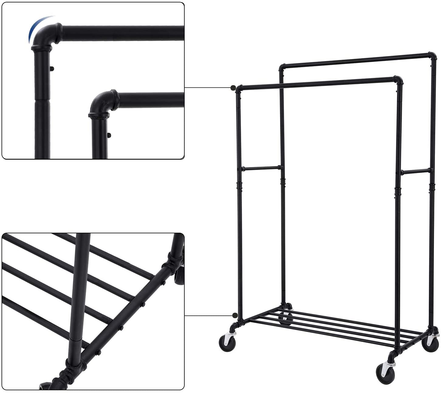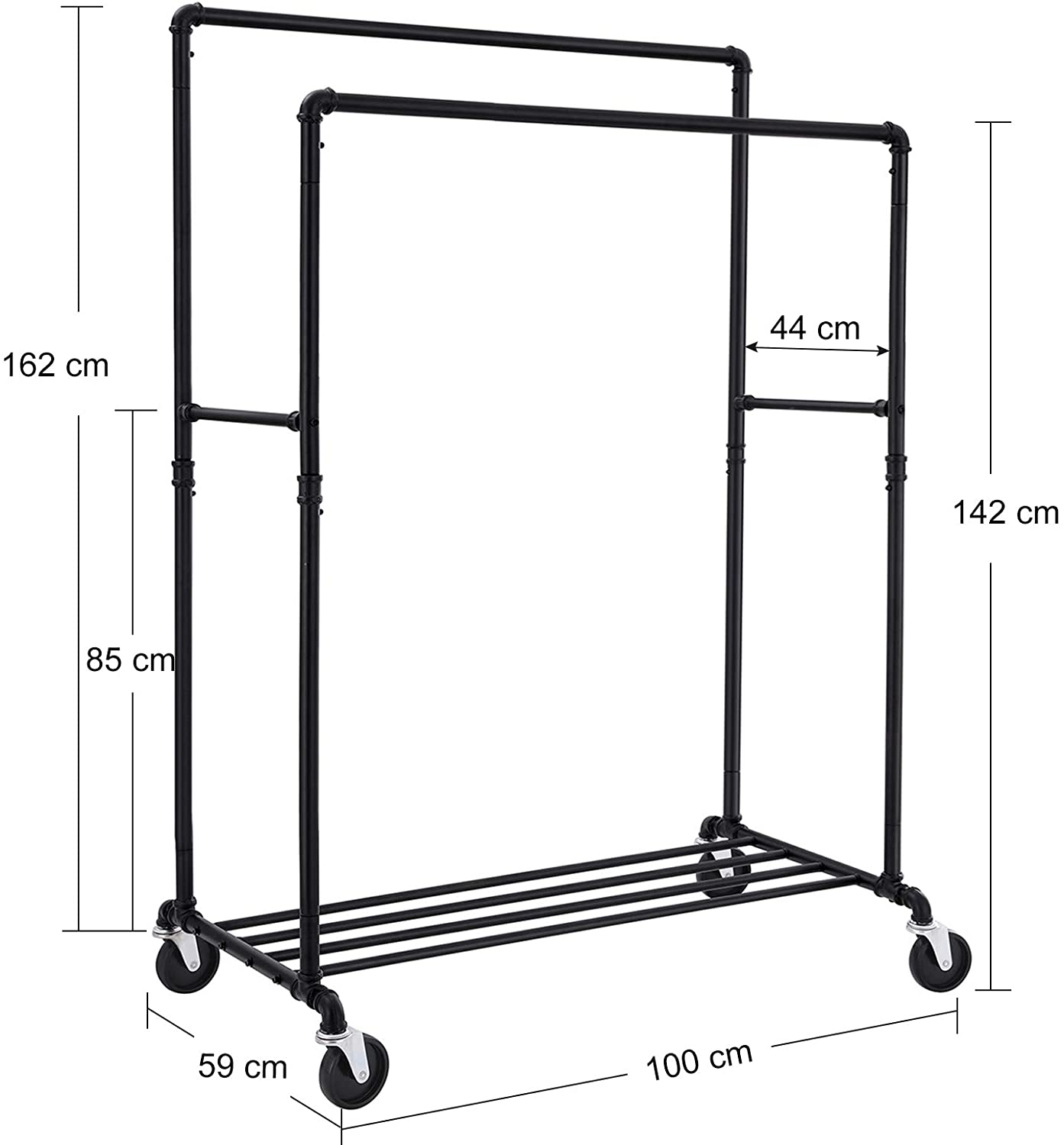 Ekstra stærk dobbelt tøjstativ - Få arbejdet gjort med dette dobbelte tøjstativ i urban stil. Et ekstra stærkt og stabilt design kan holde op til 110 kg tøj, hvilket gør det til et ideelt valg til tøjbutikker eller til at underholde store grupper af gæster.