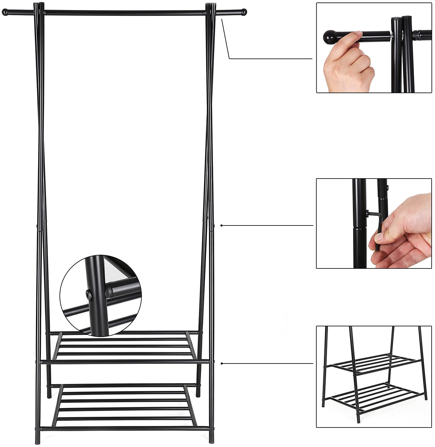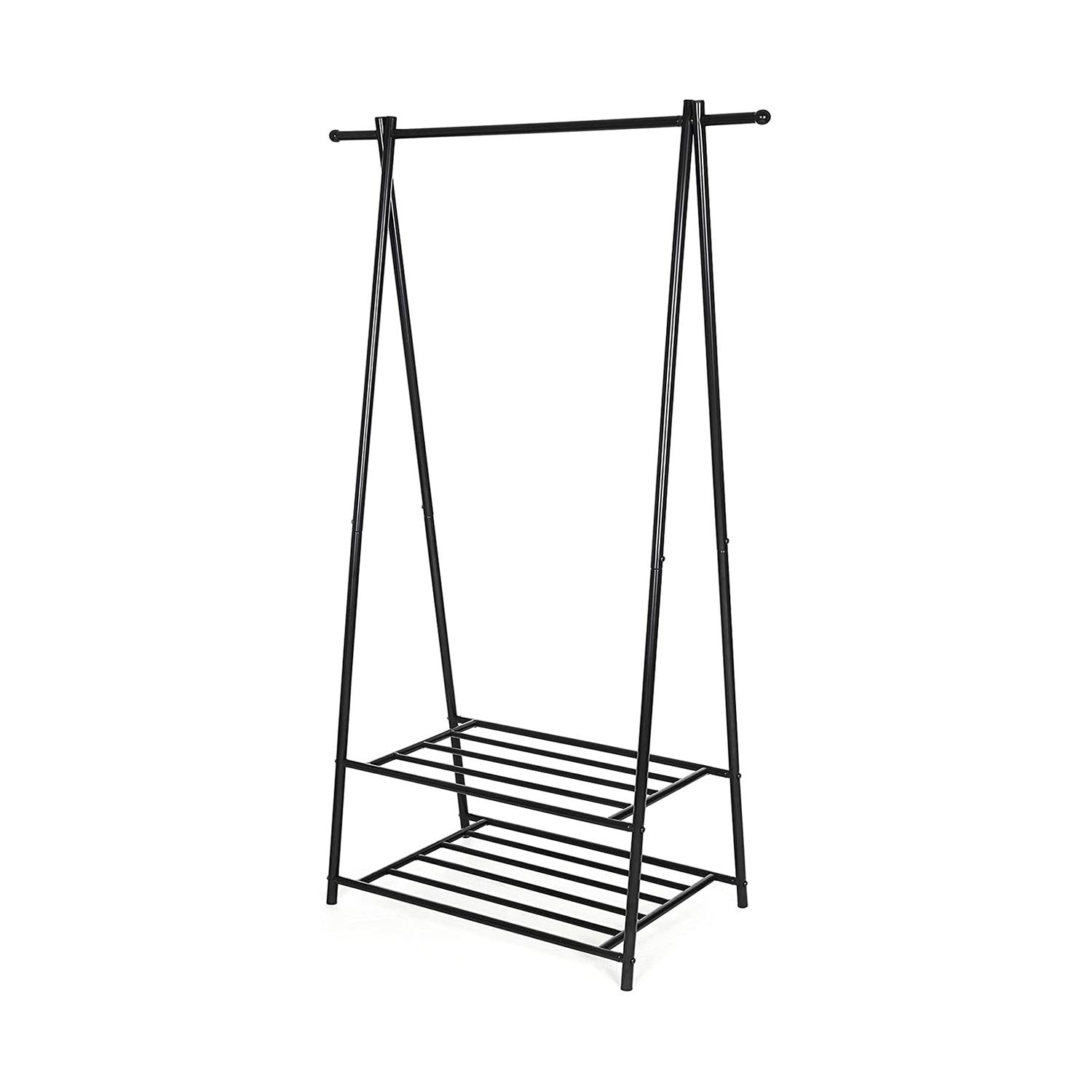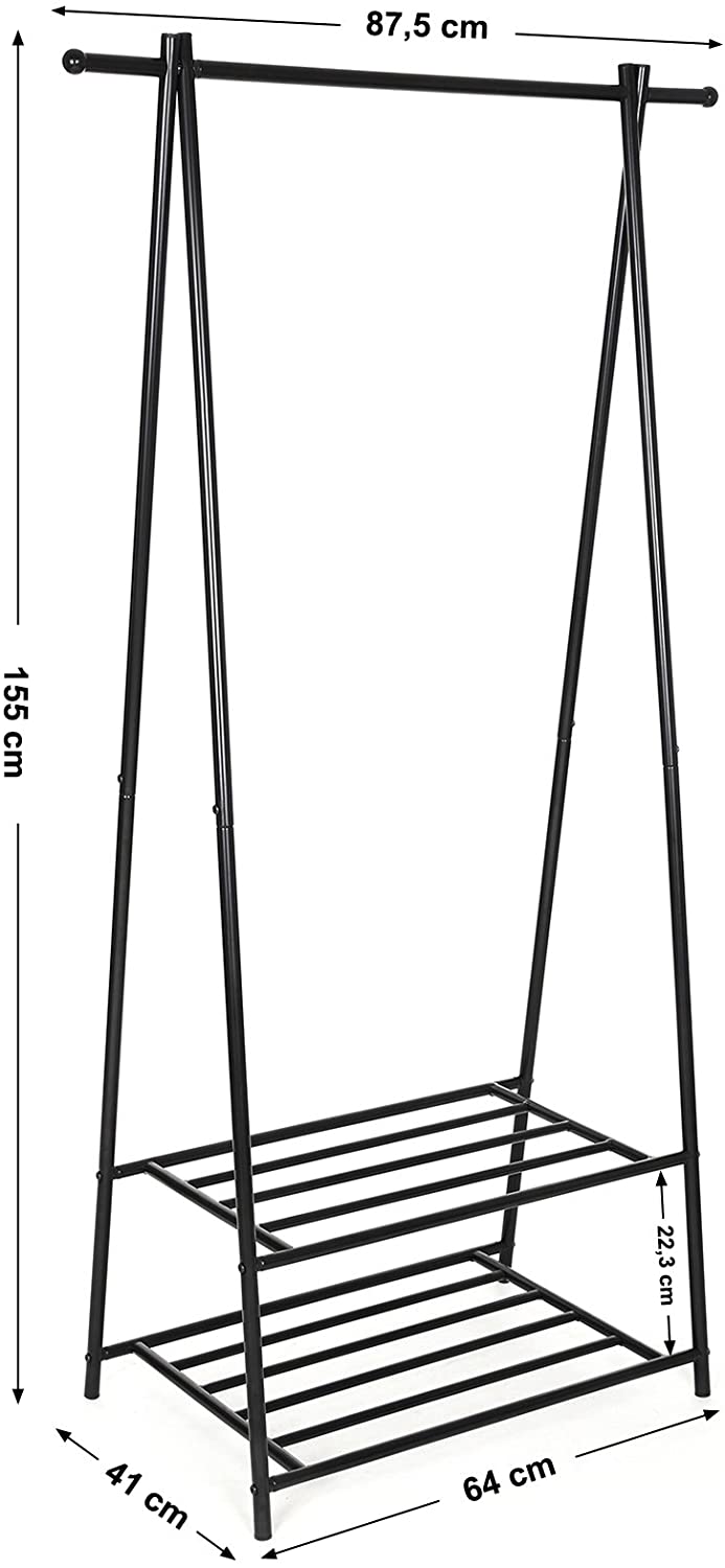 Enkel og stabilt garderobestativ - Perfekt til at organisere dit tøj på et lille sted! Dette garderobestativ er ikke kun stilfuldt, men også robust og kan rumme op til 20 kg tøj på bøjlestangen og 25 kg per hylde. Det kræver minimal indsats at samle, så du er klar til at gå i gang på ingen tid.