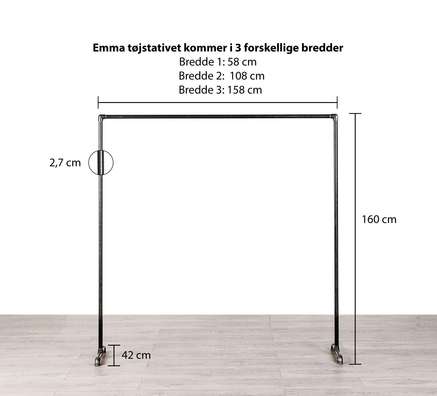 Emma tøjstativet i vandrør imponerer med sin utrolige styrke. Denne bøjlestang kan bære mere end 100 kilo tøj uden problemer. Aldrig mere skal du bekymre dig om overbelastede bøjlestænger. Lad dit tøj hænge trygt på dettee fantastiske tøjstativ.