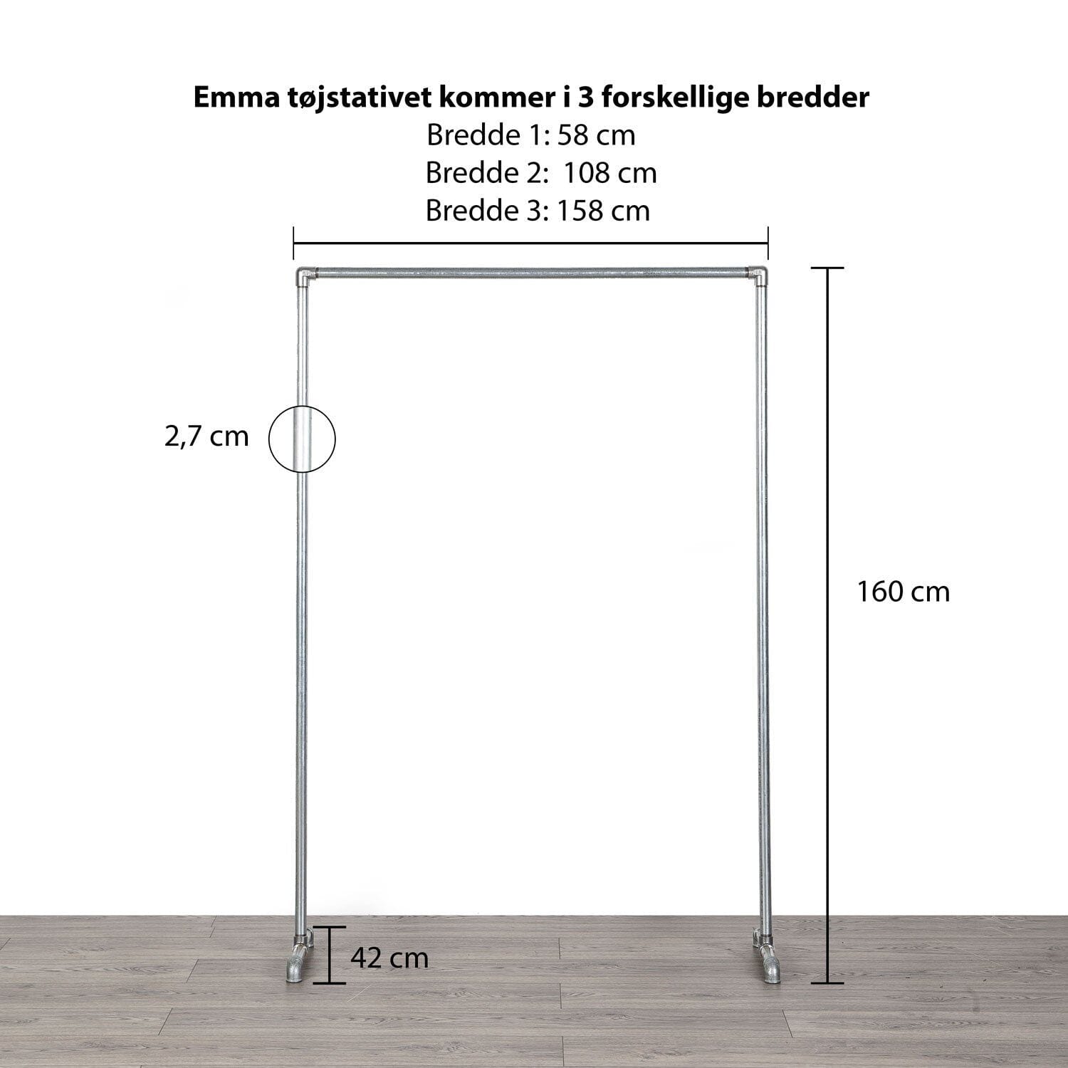 Emma tøjstativet i vandrør imponerer med sin utrolige styrke. Denne bøjlestang kan bære mere end 100 kilo tøj uden problemer. Aldrig mere skal du bekymre dig om overbelastede bøjlestænger. Lad dit tøj hænge trygt på dettee fantastiske tøjstativ.