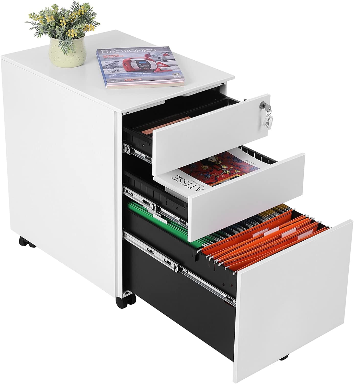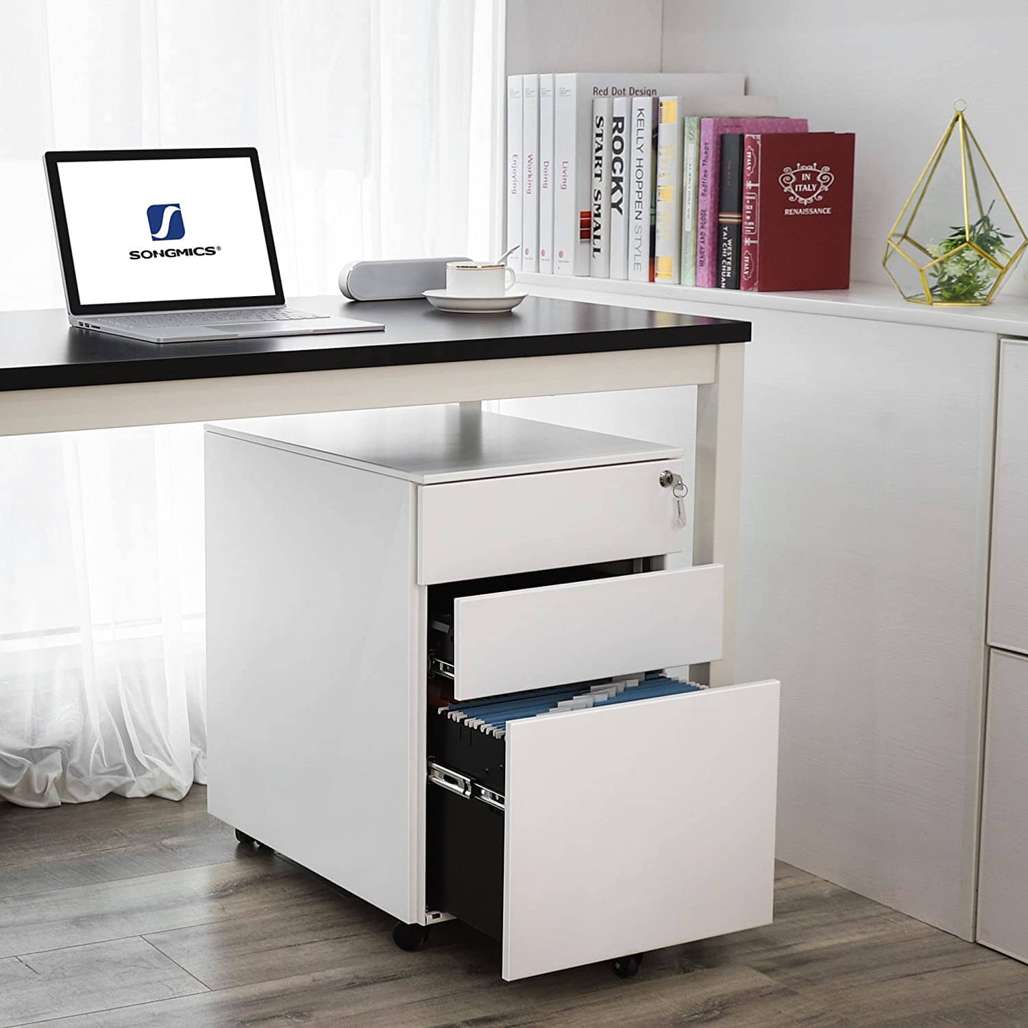 Mere plads på kontoret og hjemmekontoret - Få orden i tingene med denne praktiske, aflåselige mobile beholder. Du kan nemt opbevare den under dit skrivebord for at opnå maksimal effektivitet, og du vil hurtigt værdsætte den ekstra hylde/opbevaringsplads, som den giver dig.