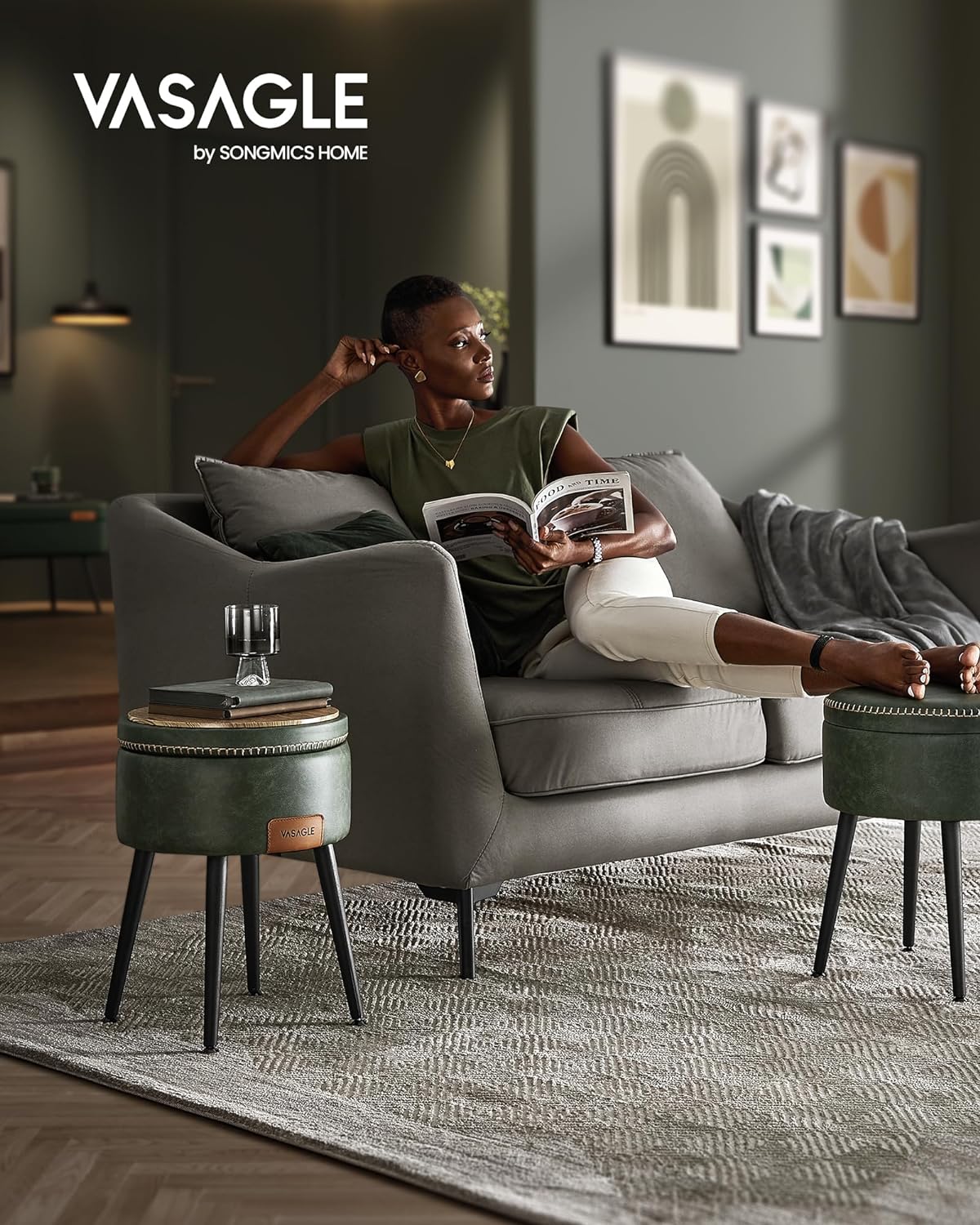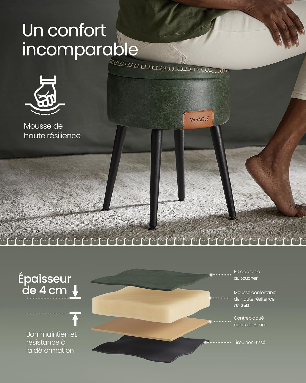 Denne puf med opbevaring er mere end blot en puf. Brug den som en puf foran dit make-up bord, en fodskammel ved din lænestol eller, som et sidebord ved at vende den øverste del. Med et volumen på 9,4 liter er den perfekt til opbevaring af dine små genstande, og dens alsidighed gør den uundværlig i ethvert rum.