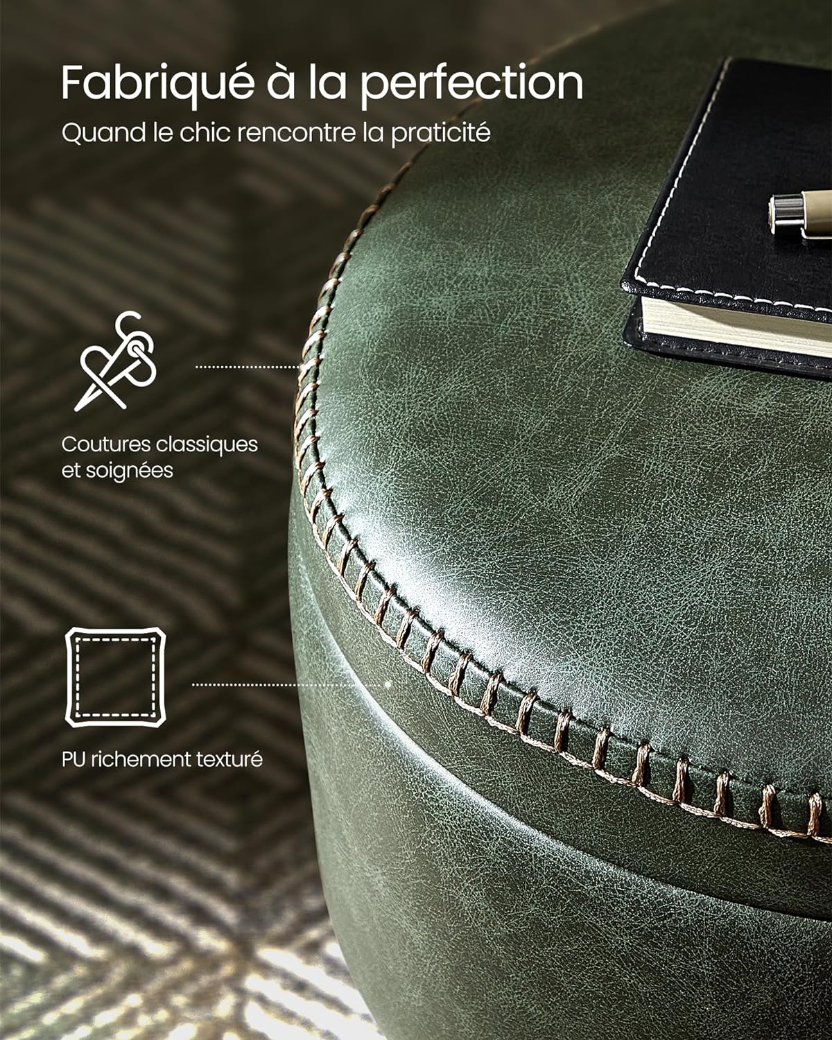 Beundr kombinationen af PU-materiale, forfinet syning og de koniske ben på denne opbevaringspuf. En ægte hyldest til håndværkets ånd, der hæver din hjemmeindretning til nye højder af elegance. Gør dit hjem smukt med dette charmerende møbel.