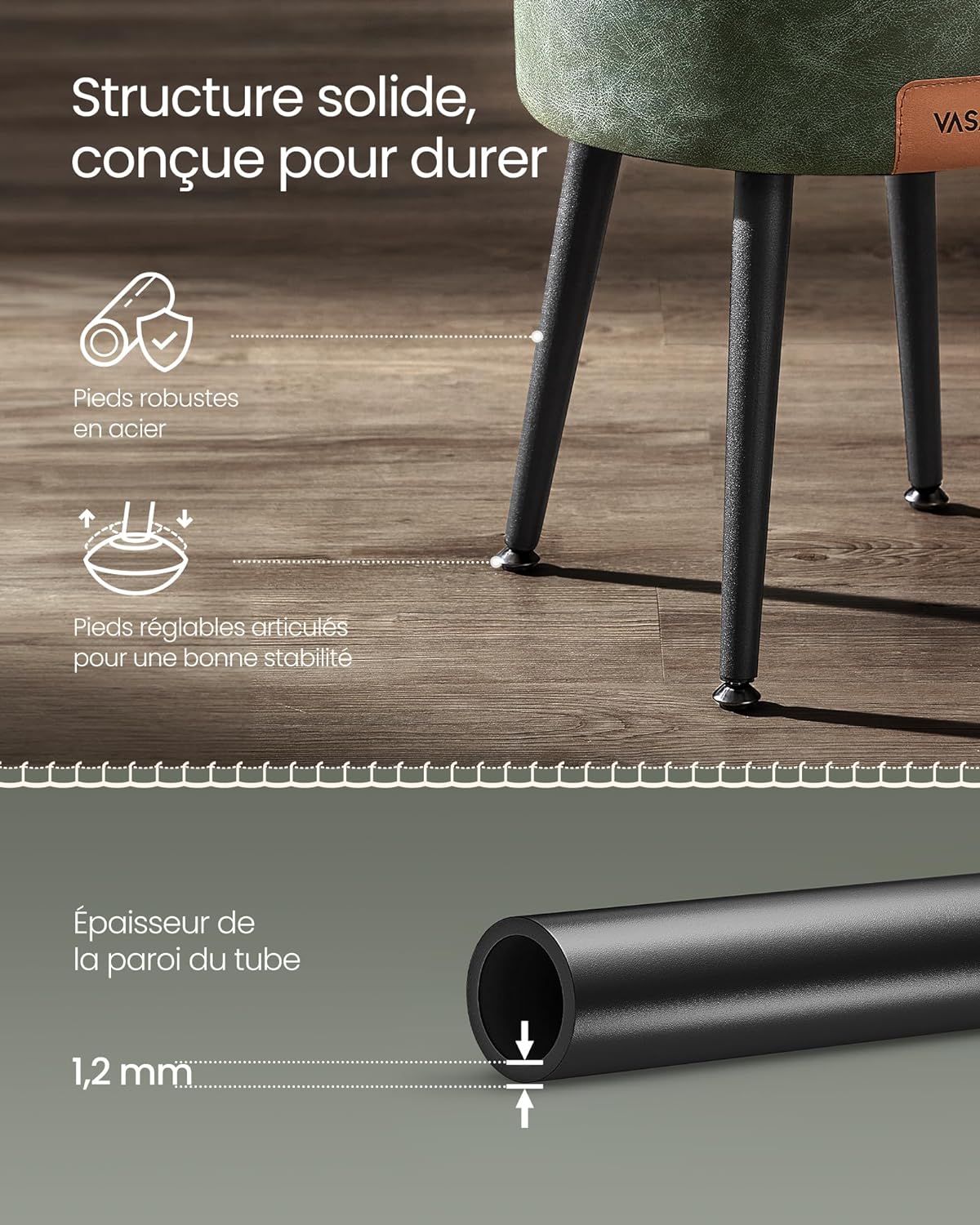 Denne puf er lavet med fire robuste stålben og er forstærket med en vægtykkelse på 1,2 mm. Udstyret med justerbare fødder kan den bære op til 150 kg, hvilket sikrer en lang levetid. Kvalitet og holdbarhed går hånd i hånd.