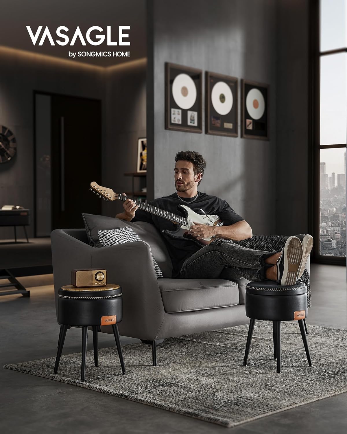 Denne puf med opbevaring er konstrueret med 4 robuste stålben, forstærket med en vægtykkelse på 1,2 mm og roterende nivelleringsfødder. Du kan trygt stole på den til at bære op til 150 kg.