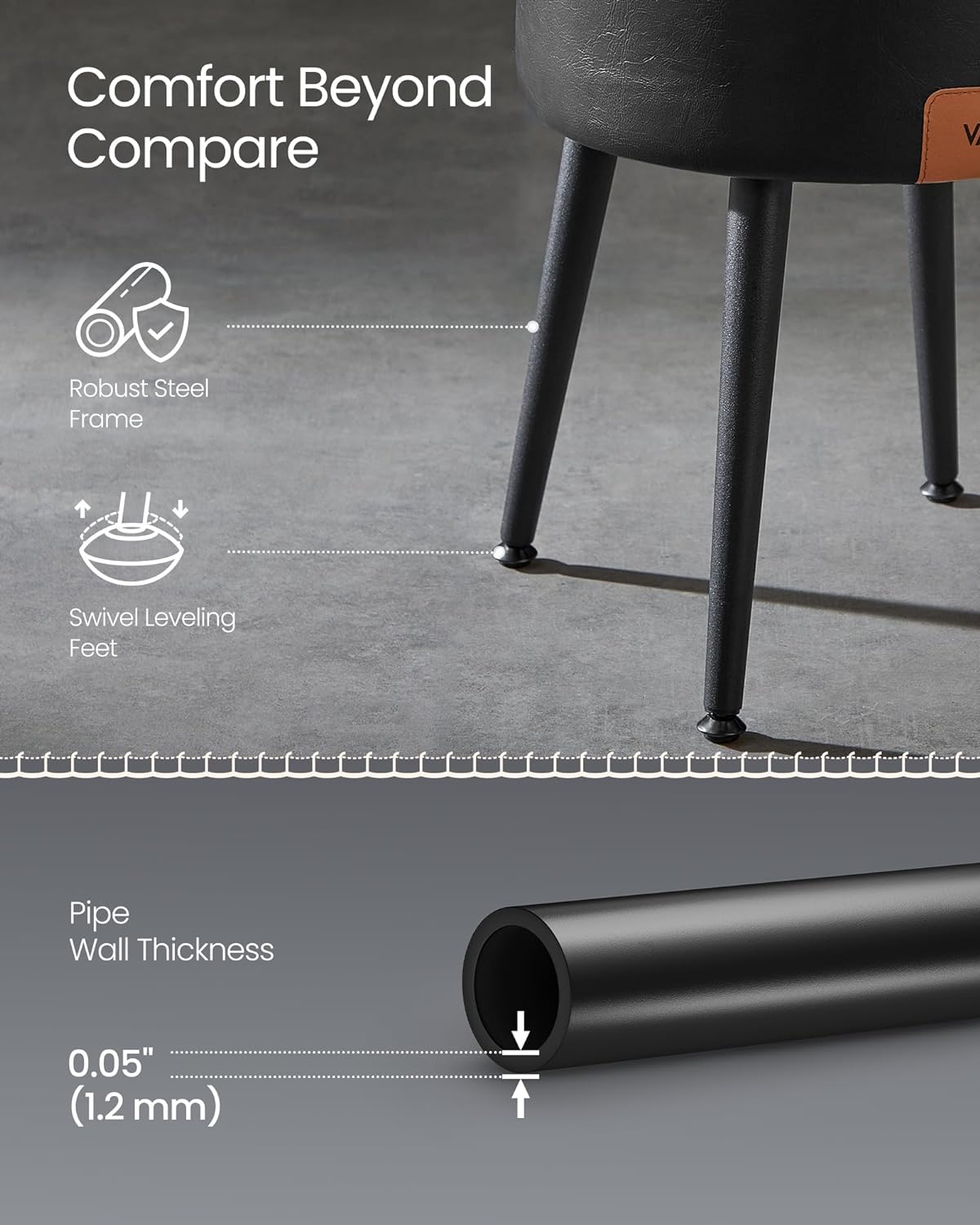 Farve | Blæksort Materiale: Stål, 25D højelasticitetsskum, PU (polyuretan) læder, krydsfiner Produktstørrelse: 38,2 x 44,4 cm Dia. x H Sædediameter: 32 cm Produktvægt: 3,3 kg Maks. samlede statiske belastningskapacitet: 150 kg |