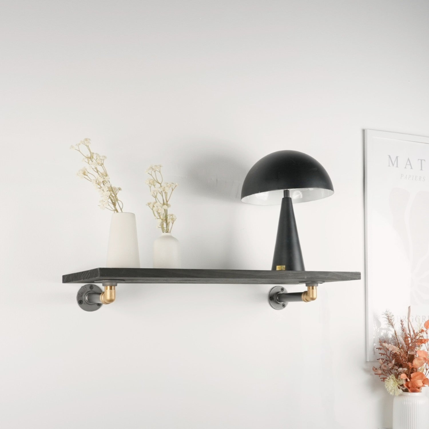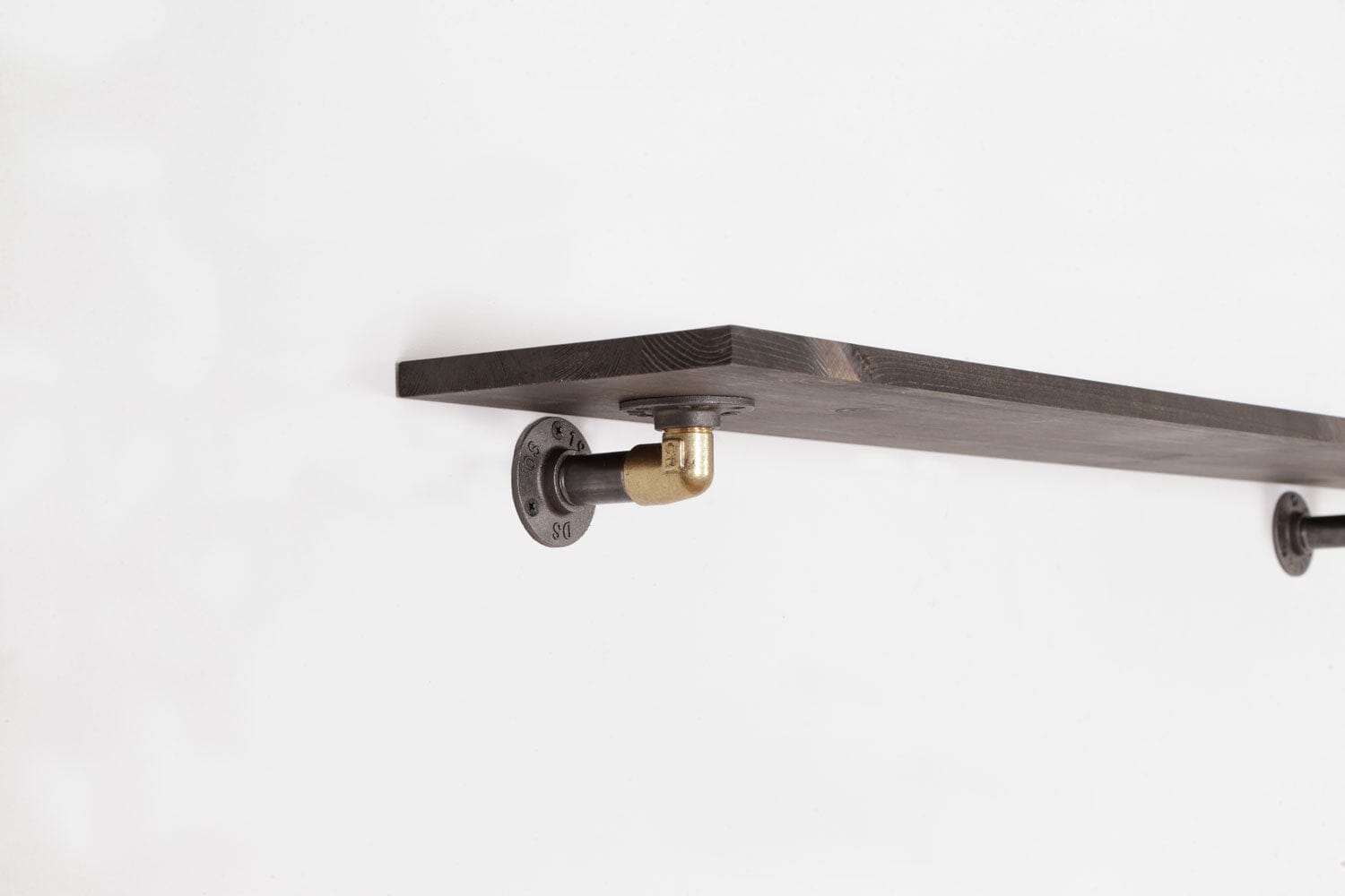 Denne træhylde til væg i sort med messing vandrør sætter nye standarder for både stil og praktisk brug i dit hjem eller erhverv. Med en robust træhylde og holdbart metaludseende tilbyder denne hattehylde et tidløst design, der smelter sammen med enhver indretningsstil. Uanset om det er til boligindretning eller i et erhvervsmiljø, er denne hyldeknægt med hylde et ideelt valg. Det smukke ægteskab mellem træ og metal skaber ikke kun et visuelt imponerende element, men også en robust opbevaringsløsning, der er skabt til at vare.