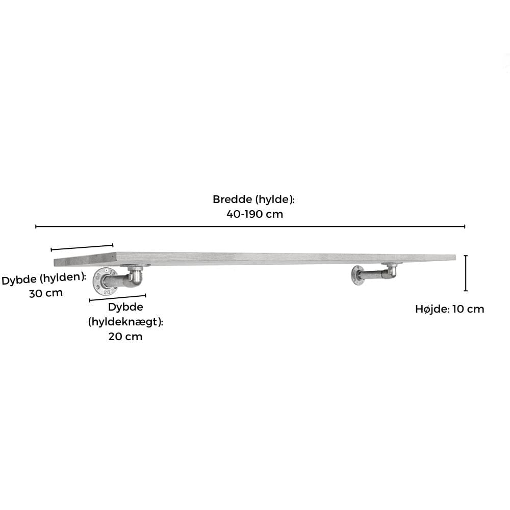 Vi går op i bæredygtighed. Vores hyldeknægt i metal er konstrueret til at vare i mange år, og træhylden er designet med fokus på at minimere miljøpåvirkningen. Samtidig tilbyder vi muligheden for tilkøb af rør og samlestykker, så du kan udvide og tilpasse din hylde til væggen, hvilket gør den ideel til skiftende behov. Nem at montere med vores medfølgende samlevejledning.
