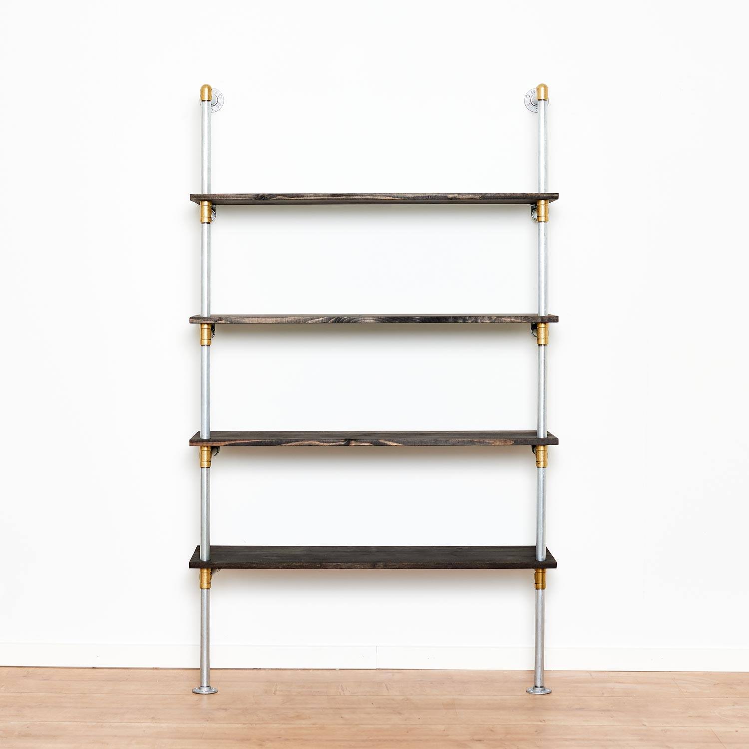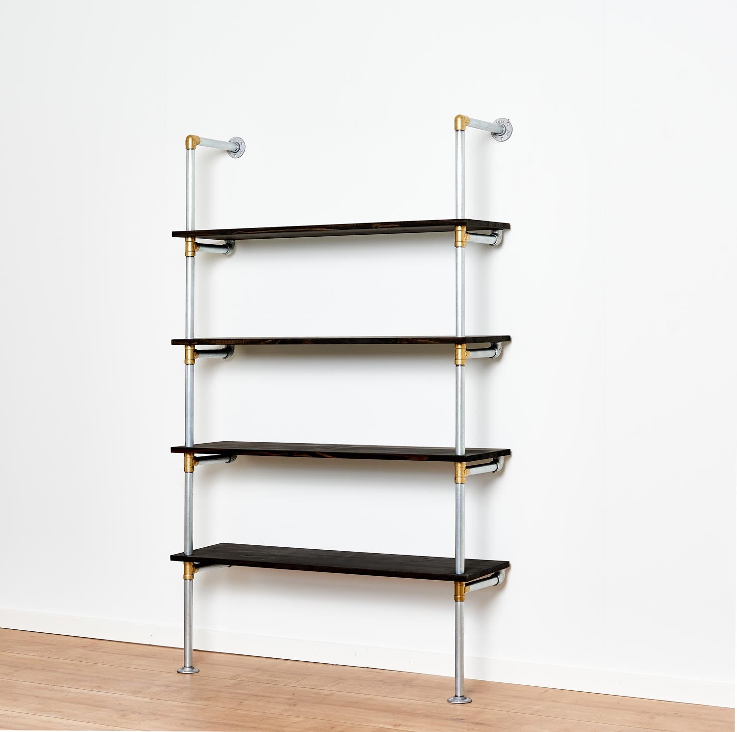 På produkt billederne ses Miley i sølv med messing samlinger. Hylderne er mørke.