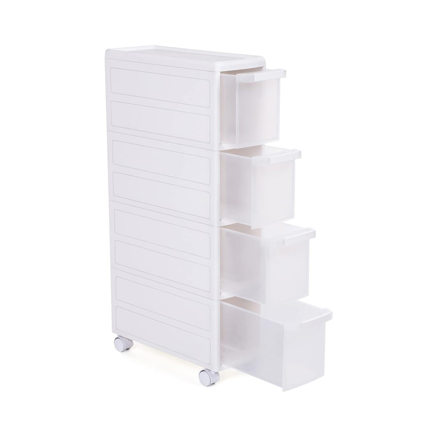 Pladsbesparende - Med sit slanke design på 18 x 46 x 84,5 cm (B x D x H) passer vores skab nemt ind i ethvert smalt hjørne! Fire dybe skuffer og øverste hylde giver masser af plads til at holde alt pænt og organiseret.