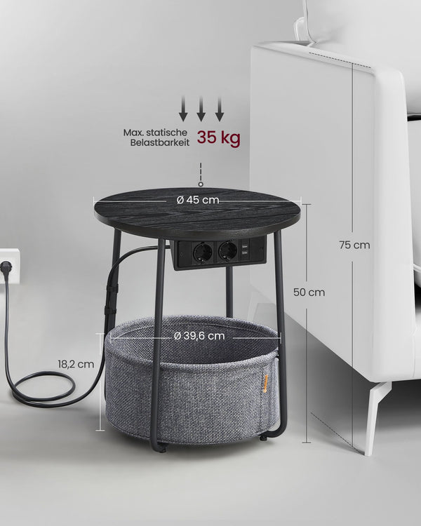 Oplev bekvemmeligheden ved dette senge- og sidebord, der er udstyret med 2 stikkontakter og 2 USB-porte lige under bordpladen. Du behøver aldrig mere lede efter en stikkontakt – oplad din lampe, mobiltelefon, tablet og andre enheder direkte fra dit bord. Det er den ideelle løsning til at holde dine enheder inden for rækkevidde og organiseret.