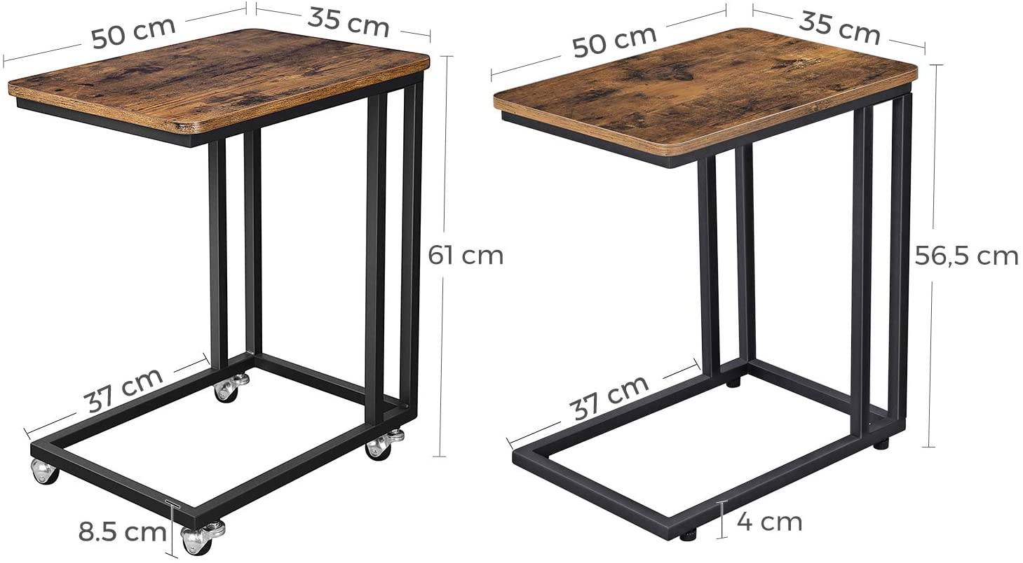 Elegant blanding af stilarter - Det robuste stel i matsort stål og den rustikke brune bordplade får dette mobile sofabord til at skille sig ud fra mængden. Skub det nemt ind under din sofa eller seng (7 cm frihøjde er nødvendig) for at forkæle din kæreste med morgenmad på sengen!