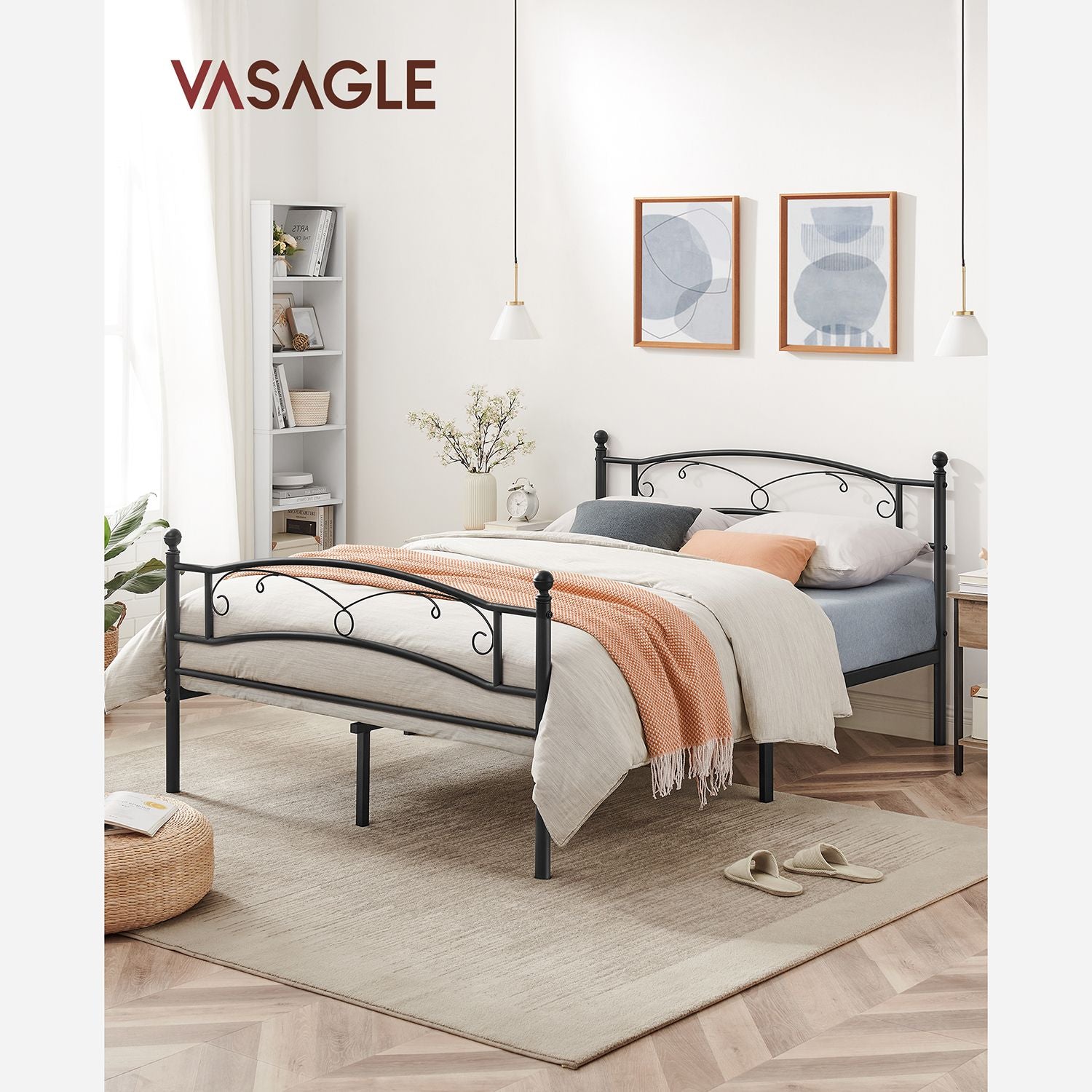 Denne sorte seng med liljekonvalmønster og rene linjer tilføjer tidløs elegance til dit hjem. Perfekt til at skabe et stilfuldt og roligt miljø i soveværelset.