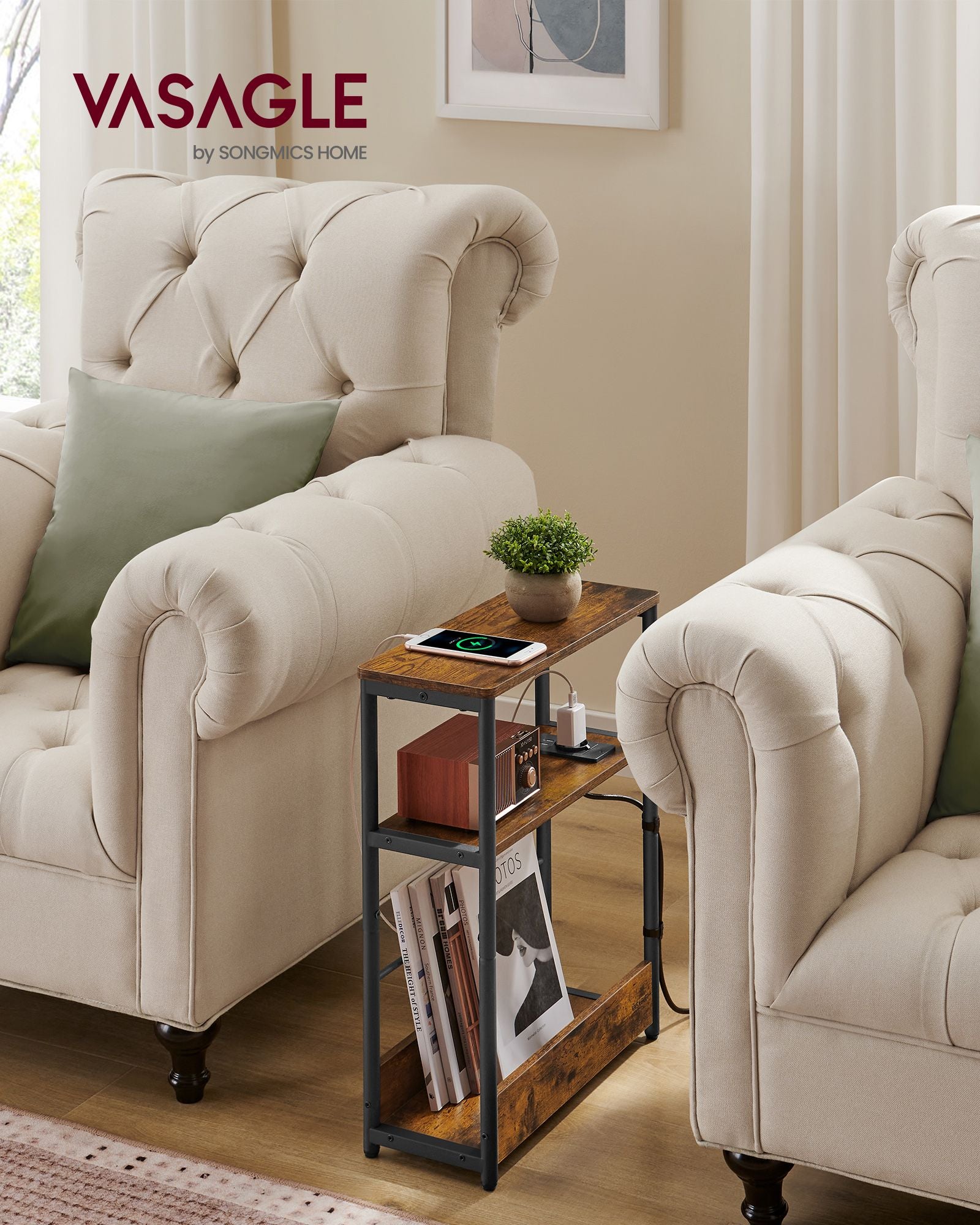 Dette lille bord er udstyret med en integreret strømstik og to USB-porte, hvilket gør det muligt at oplade din telefon, tablet og andre enheder på samme tid. Med en 2 meter lang ledning kan du placere bordet, hvor du vil, uden at skulle bekymre dig om stikkontaktens placering. Dette gør bordet til en praktisk løsning for moderne hjem, hvor teknologiske behov spiller en stor rolle i hverdagen.
