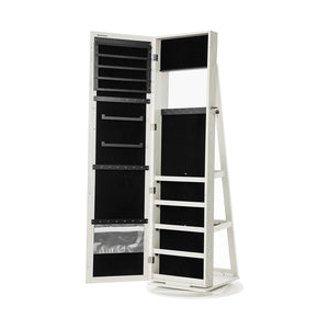 Nyt design: Gør dit liv mere praktisk med dette multifunktionelle smykkeskab. Dens 360° drejefunktion giver en perfekt visning af dine smykker fra alle vinkler. Du behøver ikke at lukke døren for at tjekke dig selv i spejlet, når du bærer smykker eller lægger makeup.