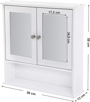 Spejl, spejl - To spejldøre giver den perfekte overflade til barbering eller påføring af makeup om morgenen; desuden sikrer den justerbare hylde indeni, at du nemt kan opbevare både store og små ting.