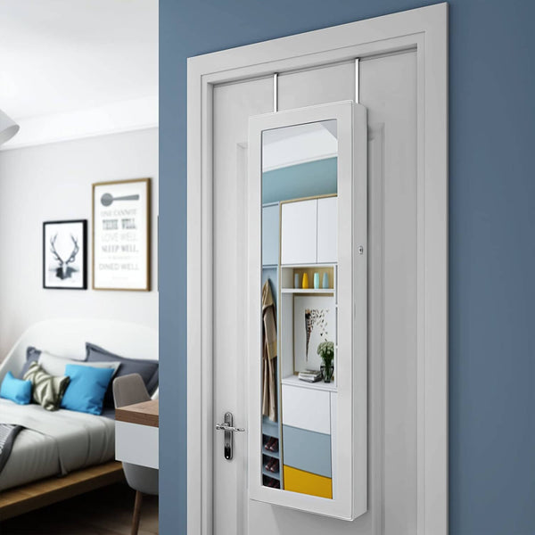 Leder du efter et elegant og sofistikeret møbel til at organisere dine dyrebare smykker? Linda smykkeskab er den perfekte tilføjelse til ethvert kvinde- eller pigesoveværelse. Dette smukke og unikke skab har et fantastisk spejl udformet med en tidløs silhuet. Når det åbnes, vil du være vidne til det ultimative skattekammer med masser af plads til øreringe, ringe og hårpynt, skuffer til parfume og kosmetik, batteridrevne LED-lys; alt sammen forberedt til at tage imod din elskede smykkesamling. Det vigtigste er, at skabet kan lukkes sikkert med magneter, der holder dørene fast lukket. Desuden kan dette skab blive en del af ethvert rum med sit praktiske design - du kan montere det på en væg eller hænge det på en dør.