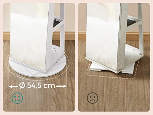 Oplev hver dag i fuld glans med vores smykkeskab, der er udstyret med et 37x155 cm stort, rammeløst fuldkropsspejl. Dette elegante design giver dig muligheden for at beundre dit outfit fra top til tå og starte hver dag med et smukt look.